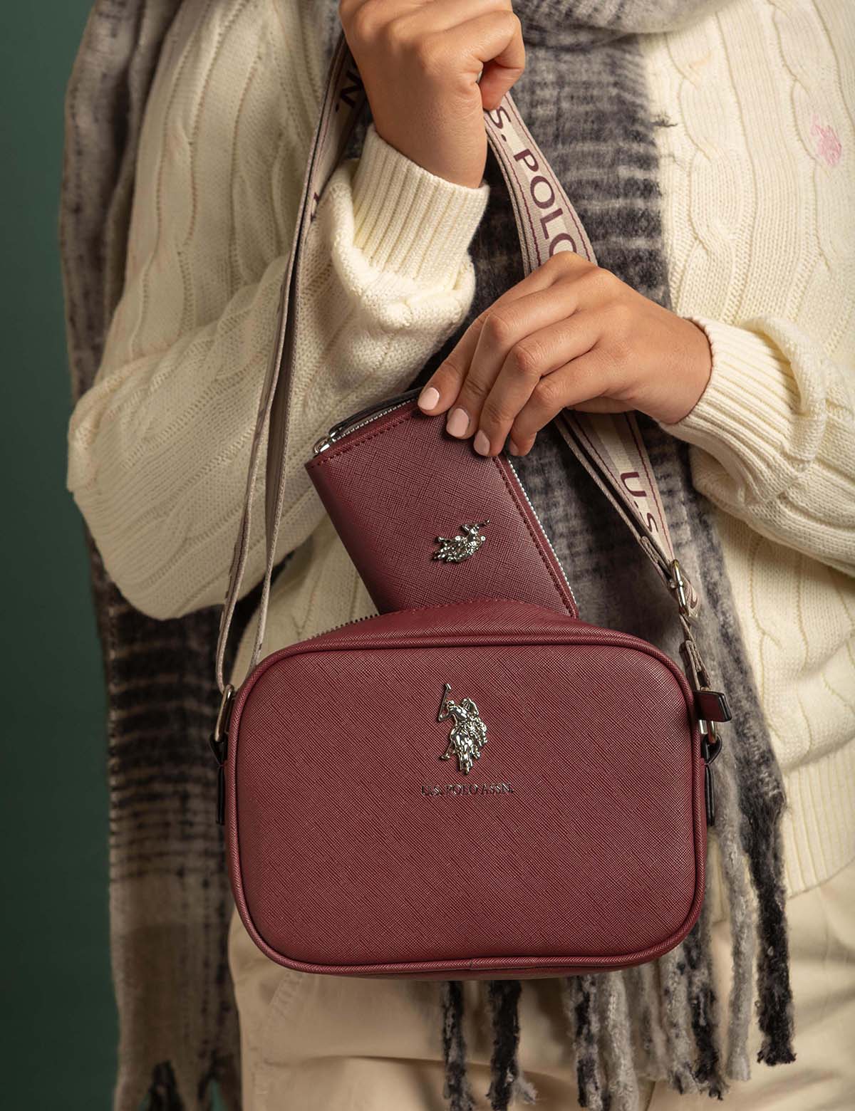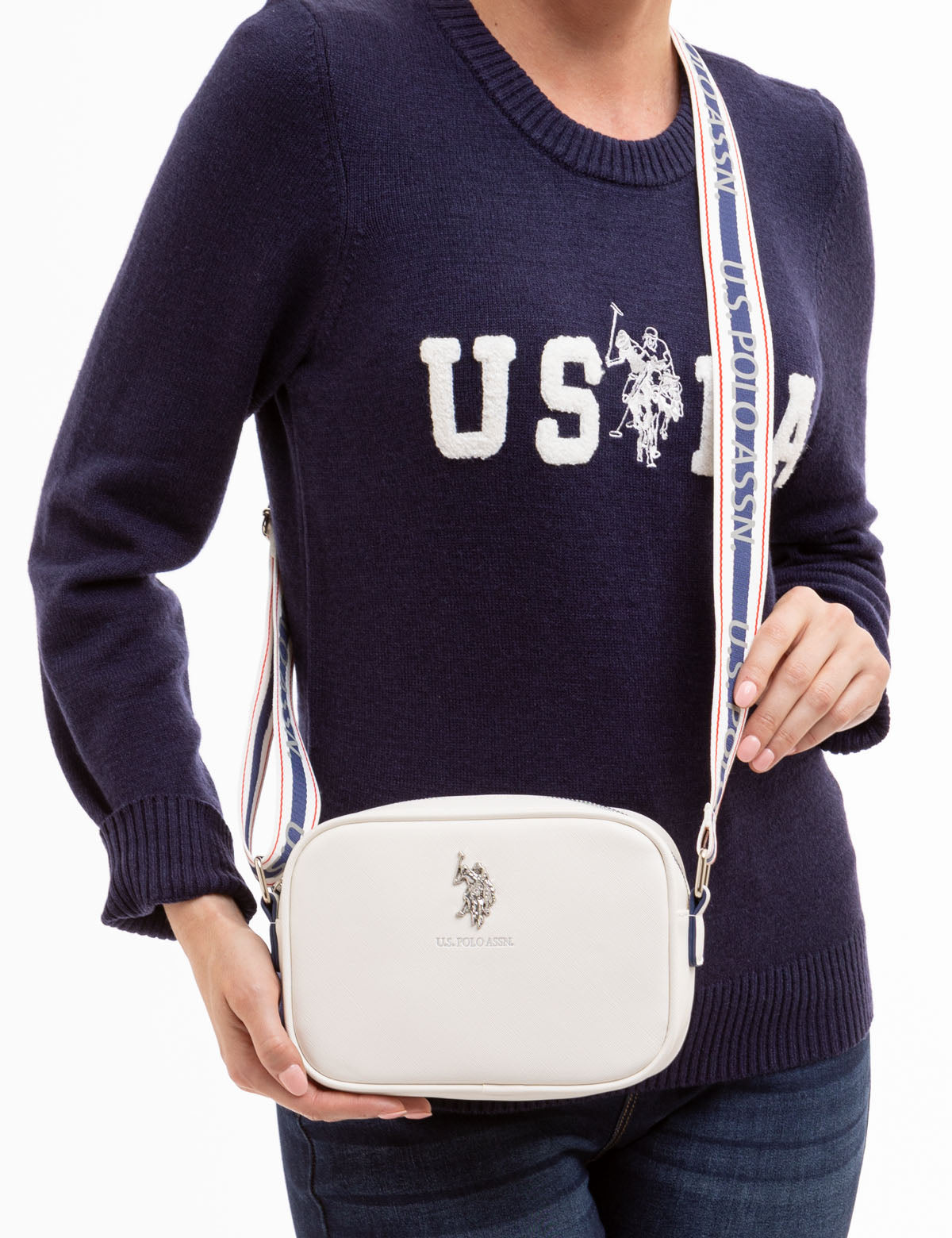 The CLASSIC ZIP CROSSBODY BAG from U.S. Polo Assn. is the perfect combination of style and function. A small crossbody bag with logo hardware and web strap, it's ideal for anything from date nights to daily errands. This style features Saffiano PU, an interior accessory pocket and a top zip closure with a branded zipper pull. Its classic styling is durable and timeless, making this a must-have accessory.