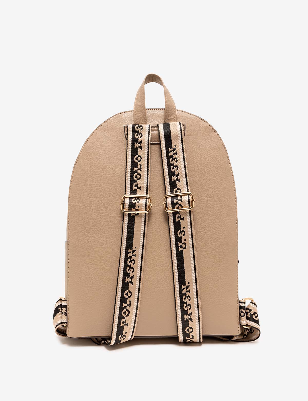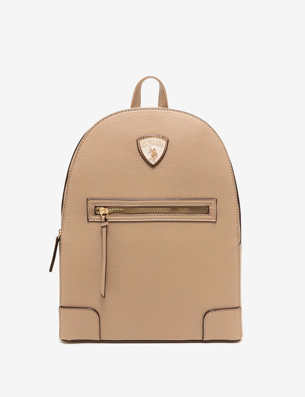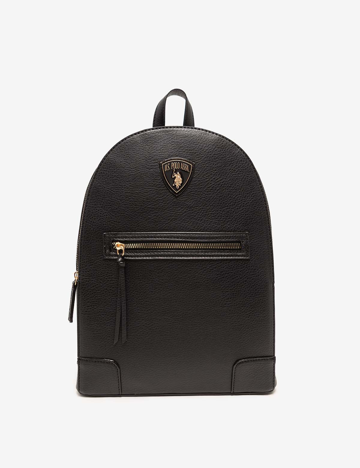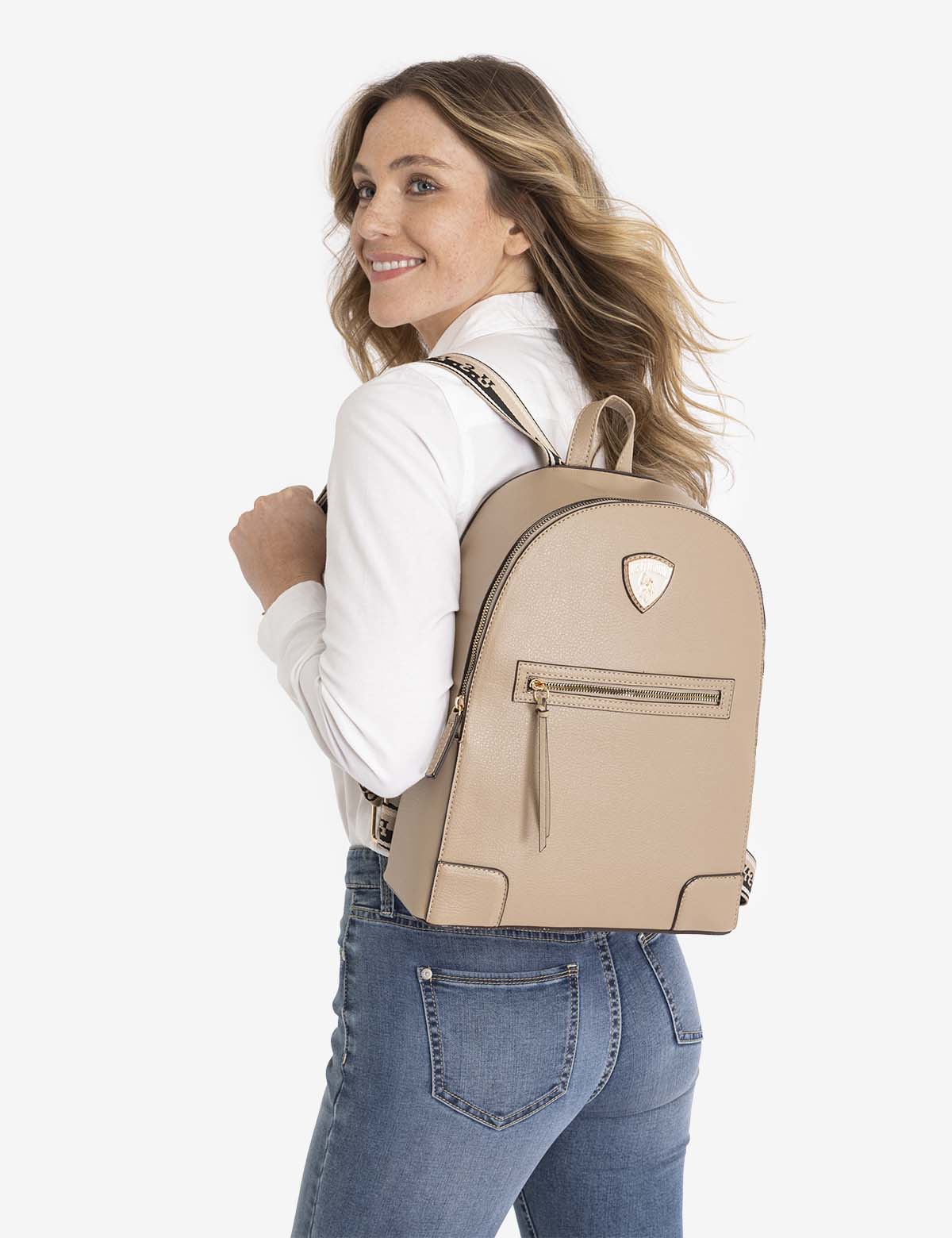 Indulge in sophistication with our luxurious CREST BACKPACK WITH BRANDED STRAP. This classic staple features branded straps, a stunning metal crest logo at the center front, and a convenient zippered pocket. Inside, you'll also find an additional zippered pocket for increased functionality.