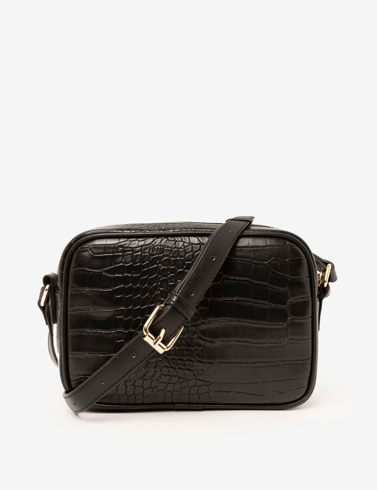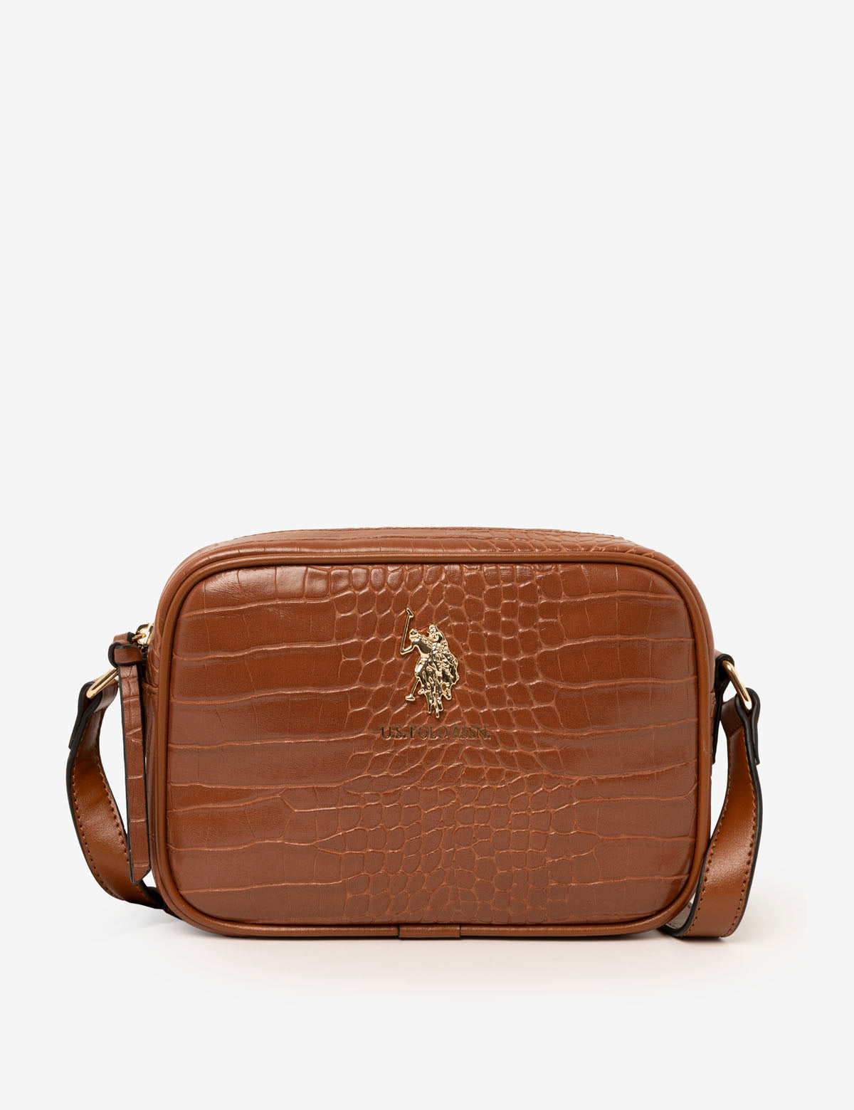 Indulge in our luxurious CROCODILE EMBOSSED CROSSBODY BAG, showcasing a striking crocodile embossed pattern. With its adjustable crossbody strap and zipper closure adorned with a tassel, this bag exudes sophistication and exclusivity. The interior boasts an accessory pocket while the exterior is embellished with a prominent metal logo.