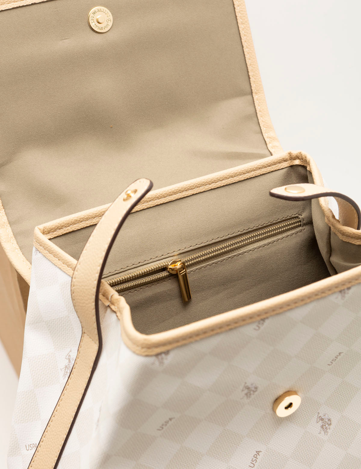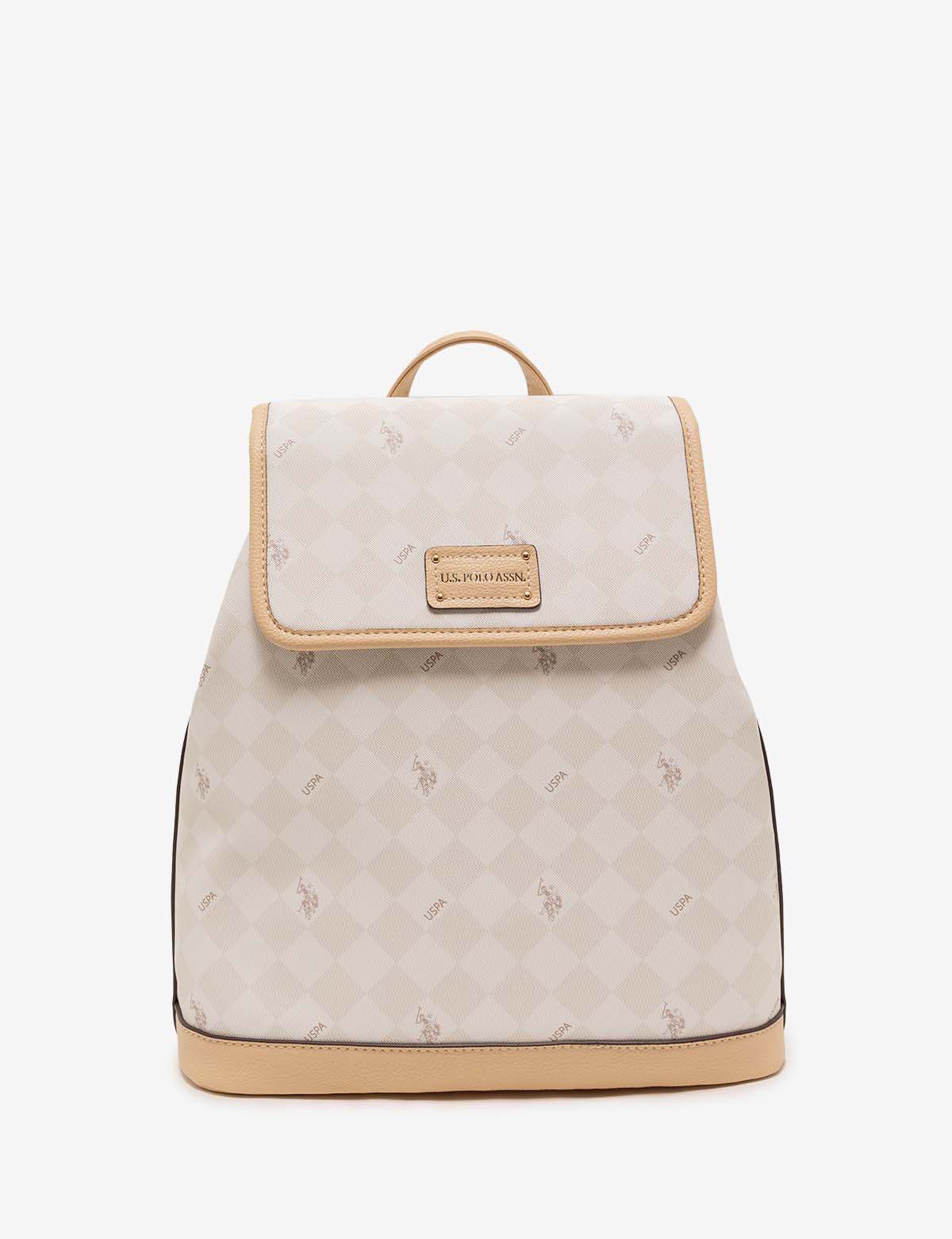The DIAMOND SIGNATURE BACKPACK is a timeless piece for any occasion. The two tone diamond pattern combined with double horseman print and USPA logo hardware ensures a classic and timeless look. Crafted with 100% PU and featuring interior accessory pockets, this backpack is 14 inches in height and 10.5 inches in width. The PU patch with USPA metal letters make for a unique and stylish finishing touch.