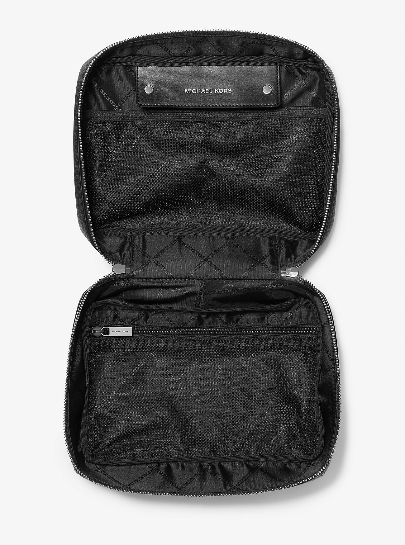 First-class style, wherever you wander. Designed in a compact shape that’s ideal for travel, this Signature-print canvas dopp kit has you covered. The hanging feature allows for easy access to a larger interior compartment which neatly stows toiletry essentials. Tuck it into your weekend bag and go.