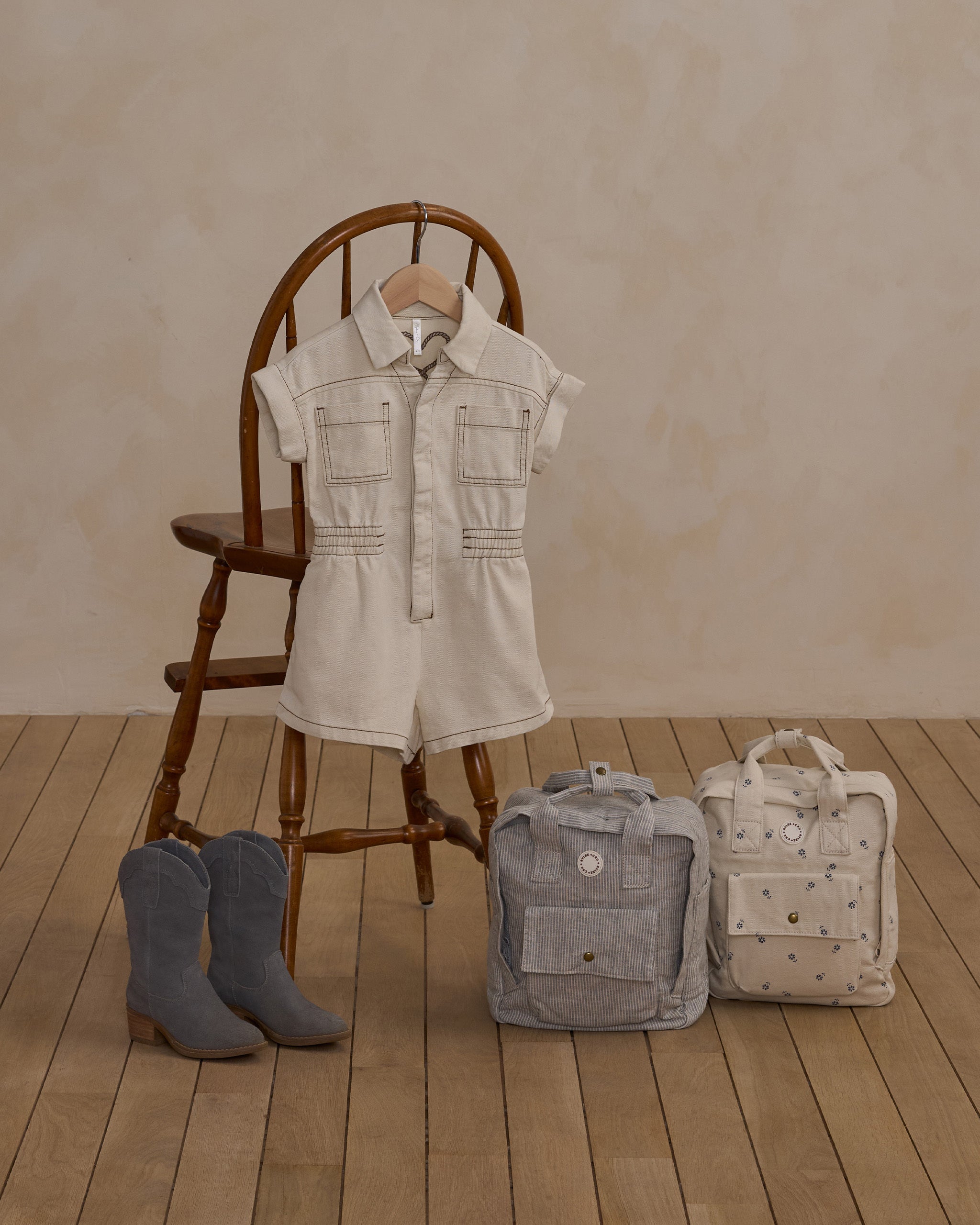 This mini backpack has a zipper main compartment, front and side pockets for extra snacks and gadgets, and shoulder straps and handles for any way your little one wants to carry it.