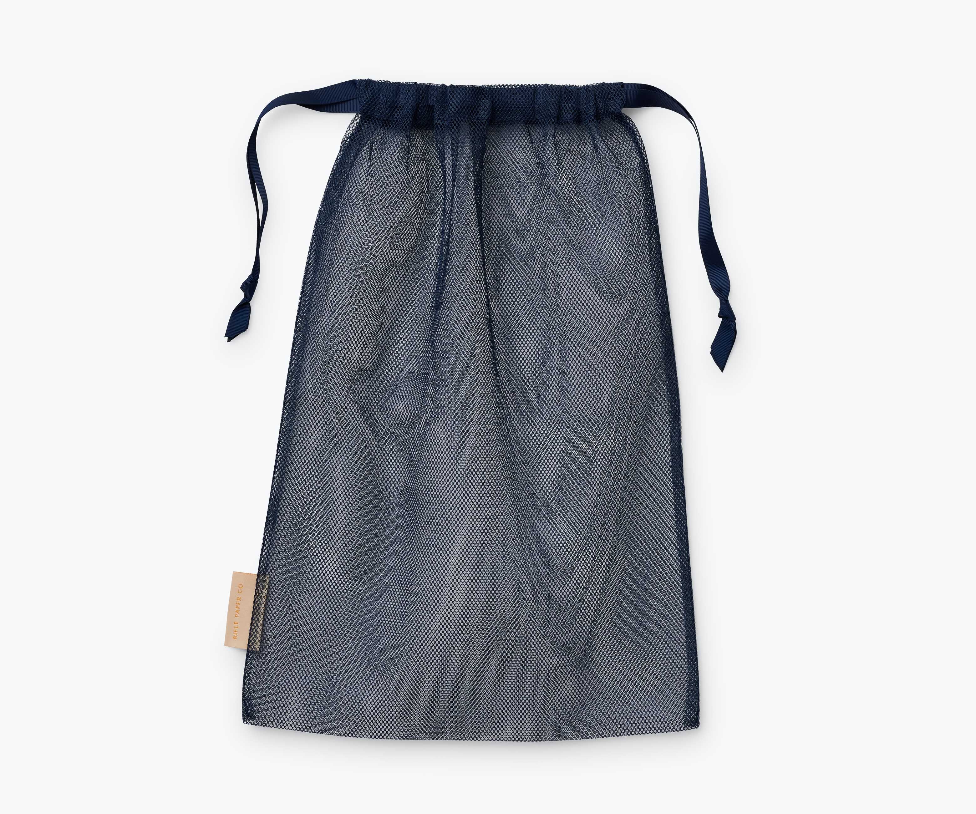 Make your packing prettier with our set of three packing cubes with zipper closures and a matching drawstring mesh laundry bag.