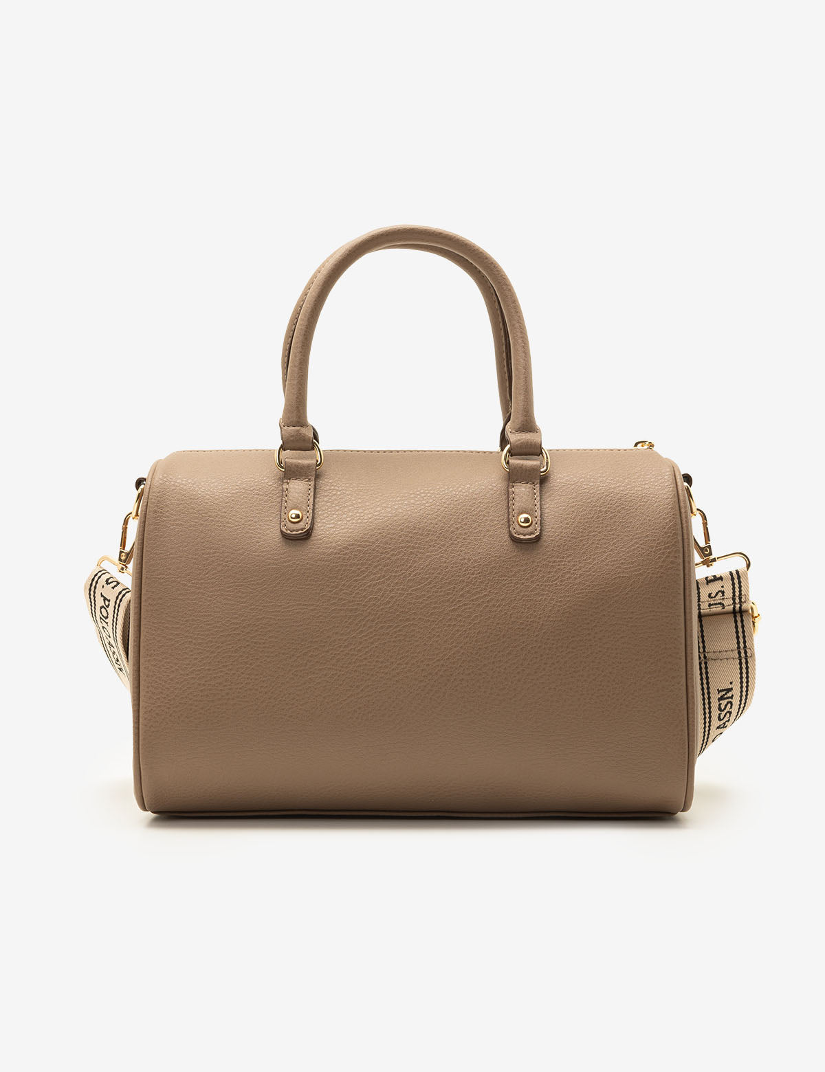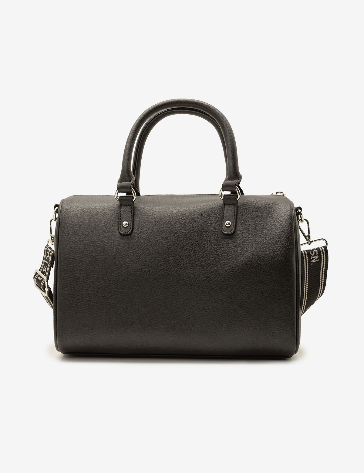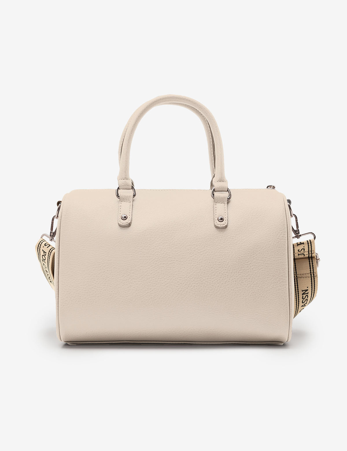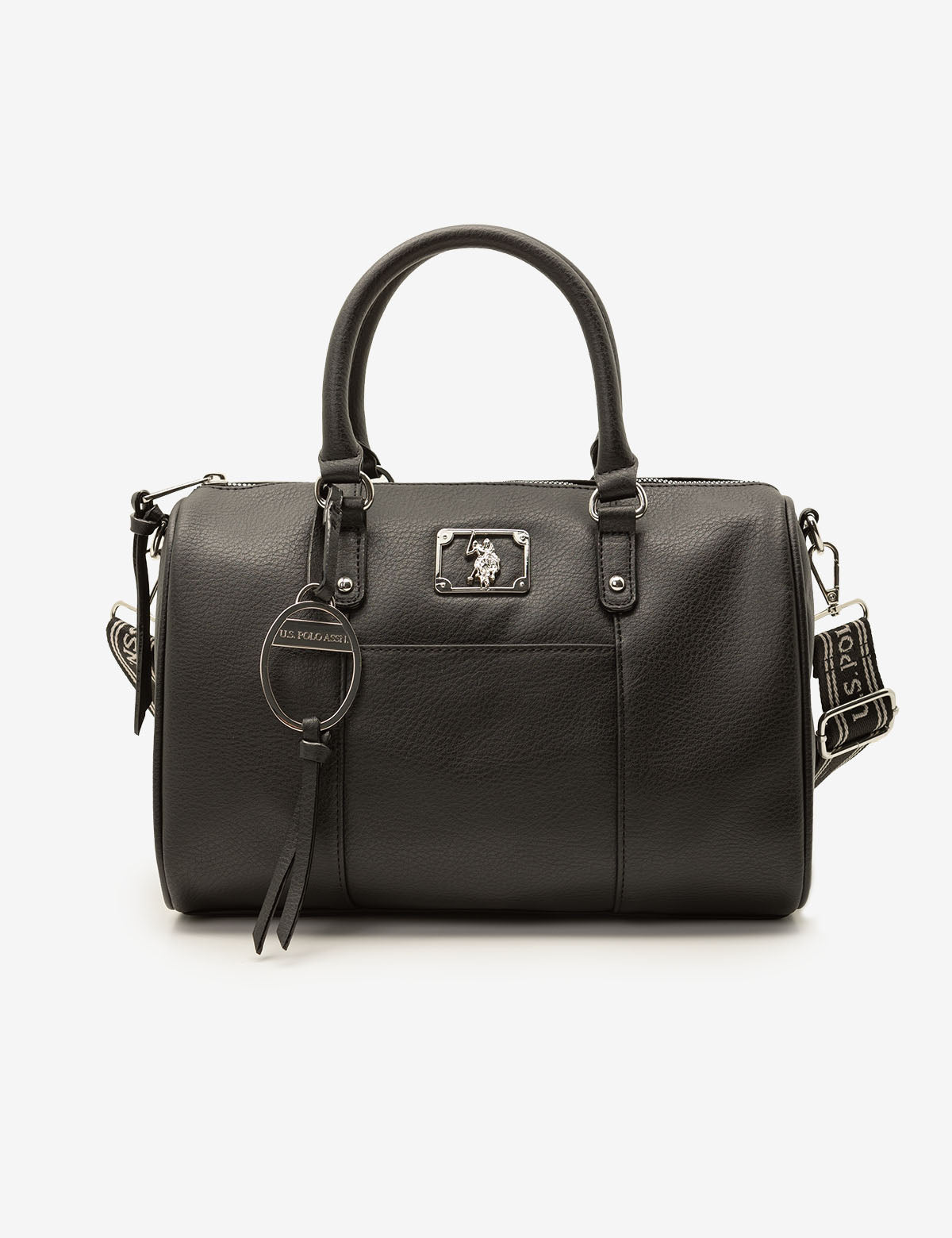 Refreshingly simple yet classic in design, the SOLID SWIFTY SATCHEL BAG WITH CROSSBODY STRAP reflects timeless elegance. Crafted from 100% PU, this sophisticated satchel features a top zippered closure, a stunning metal cutout logo, an exterior slip pocket and an optional branded webbed crossbody strap. Inside, you'll also find an additional zippered pocket for increased functionality. This bag measures approximately 8.5 inches in height and 12 inches in width.