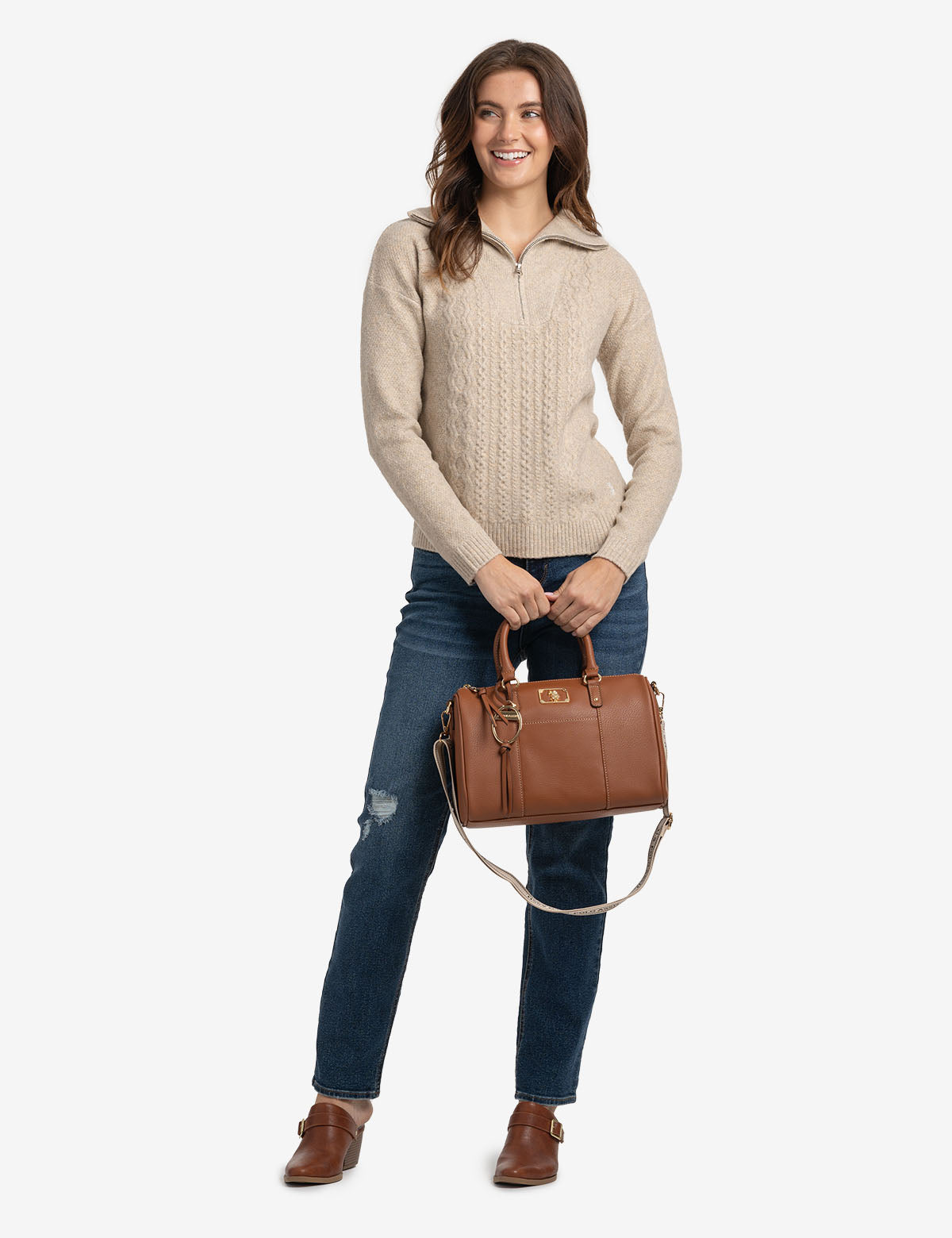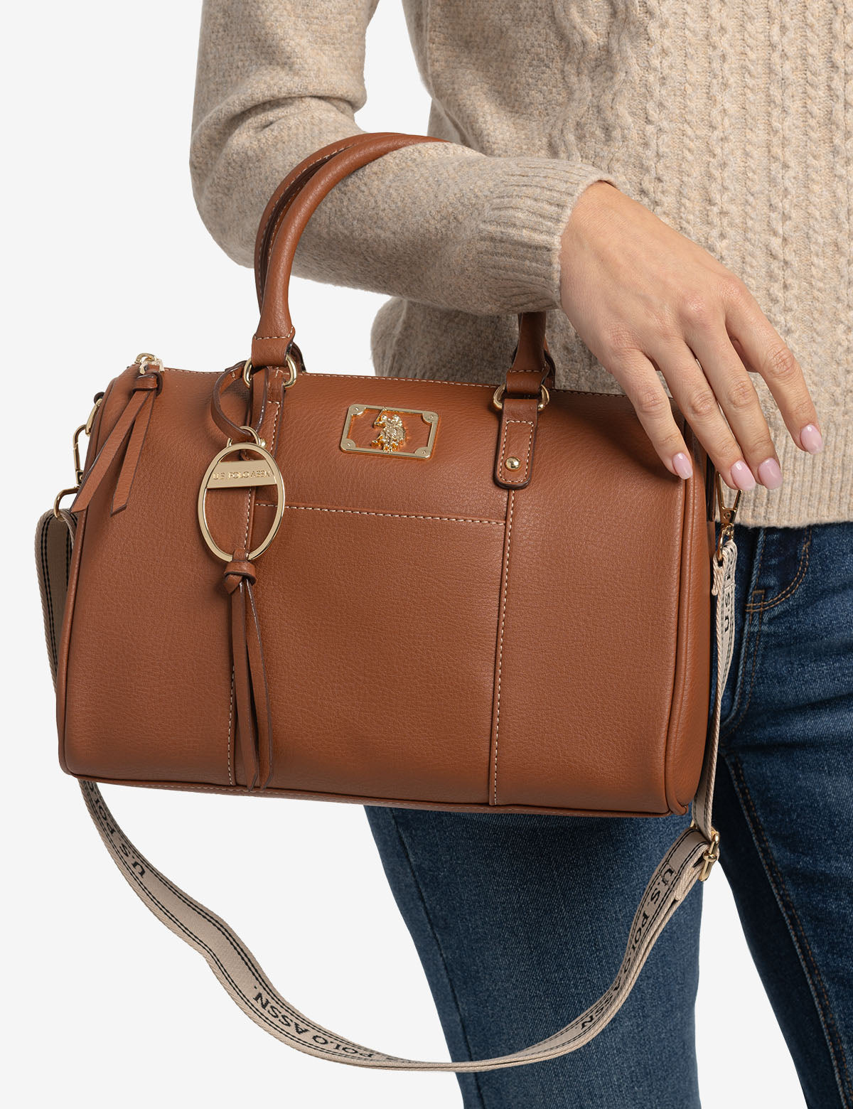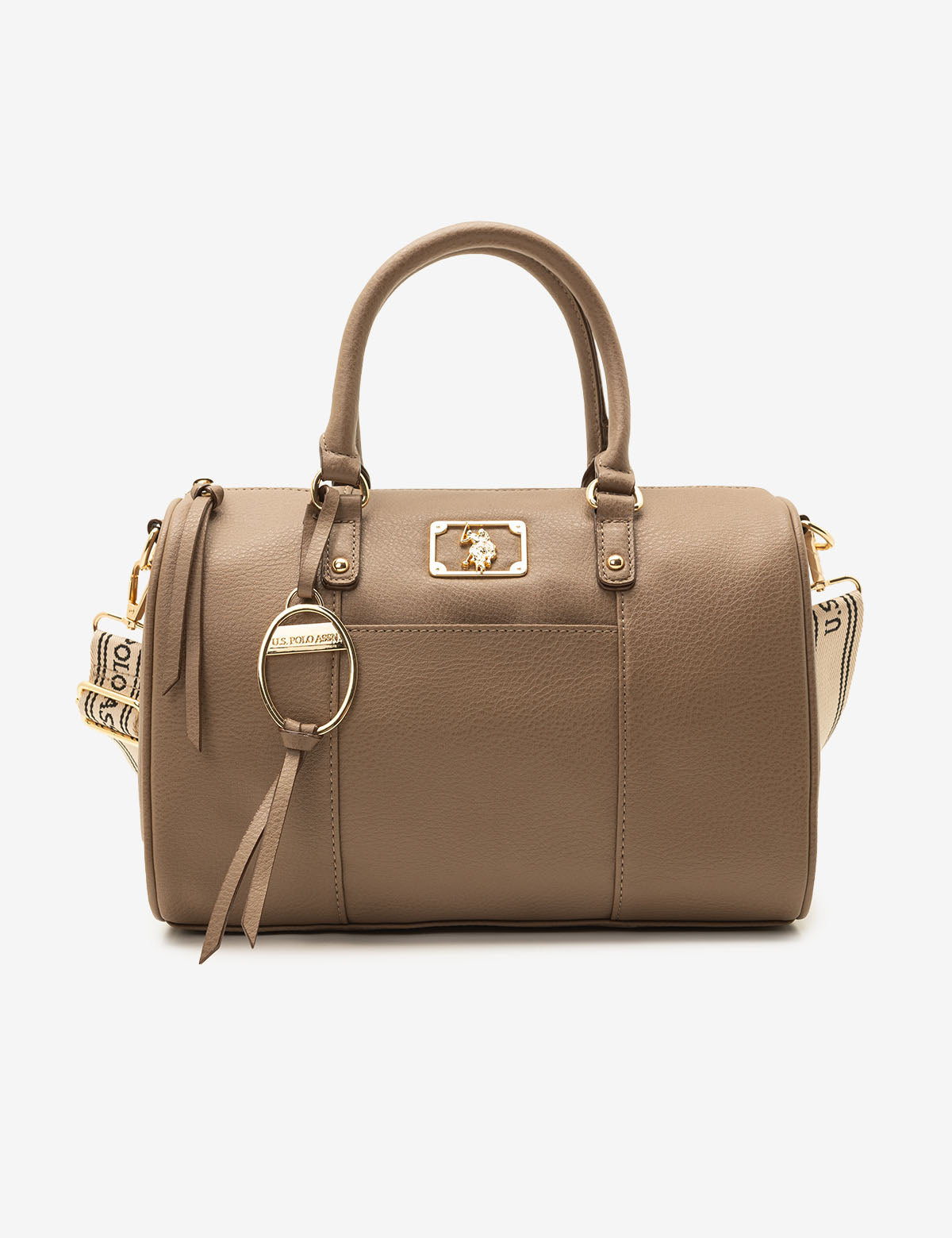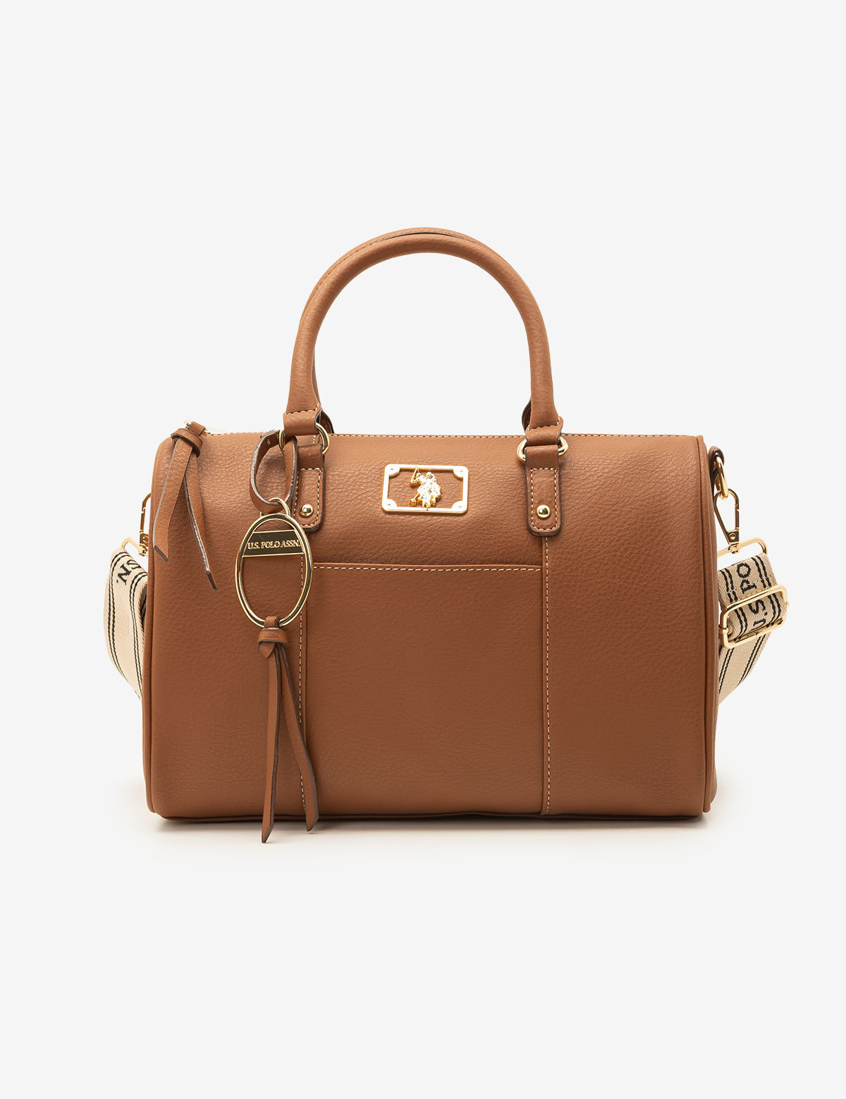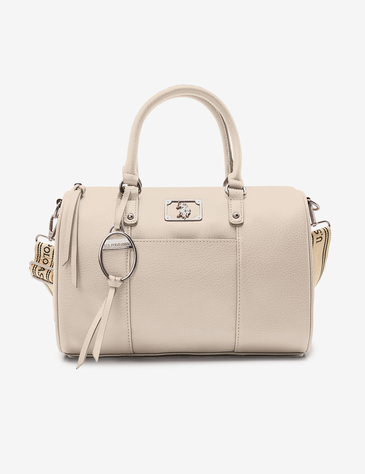 Refreshingly simple yet classic in design, the SOLID SWIFTY SATCHEL BAG WITH CROSSBODY STRAP reflects timeless elegance. Crafted from 100% PU, this sophisticated satchel features a top zippered closure, a stunning metal cutout logo, an exterior slip pocket and an optional branded webbed crossbody strap. Inside, you'll also find an additional zippered pocket for increased functionality. This bag measures approximately 8.5 inches in height and 12 inches in width.