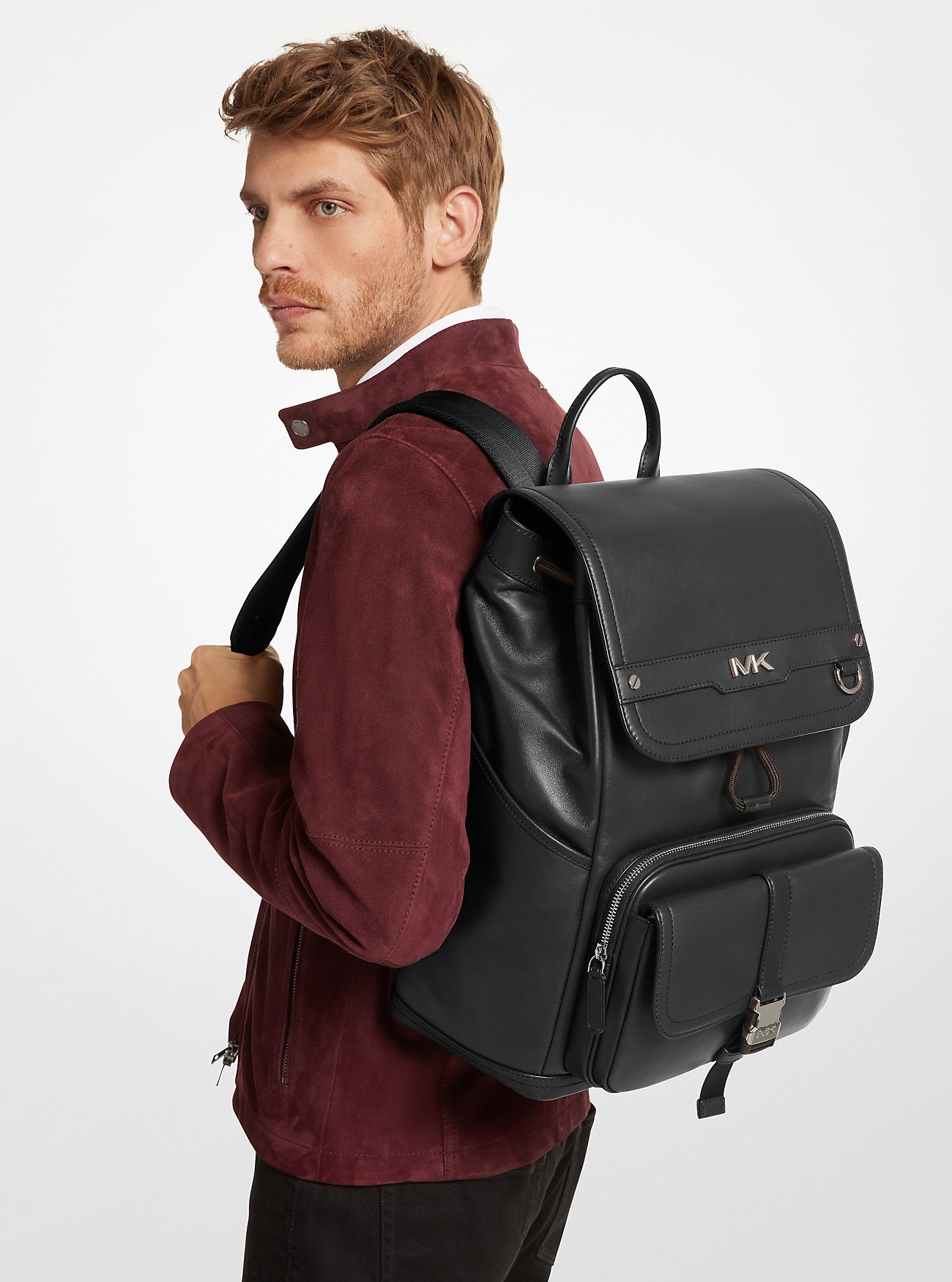 Designed to withstand daily use, our leather Varick backpack is detailed with an array of outside pockets and a trolley sleeve that makes traveling easy. A snap fastening reinforces the drawstring top to keeps all your essentials securely in place, and it has a padded back panel with adjustable straps for comfort. Inside, a dedicated slip pocket protects your tablet or laptop.