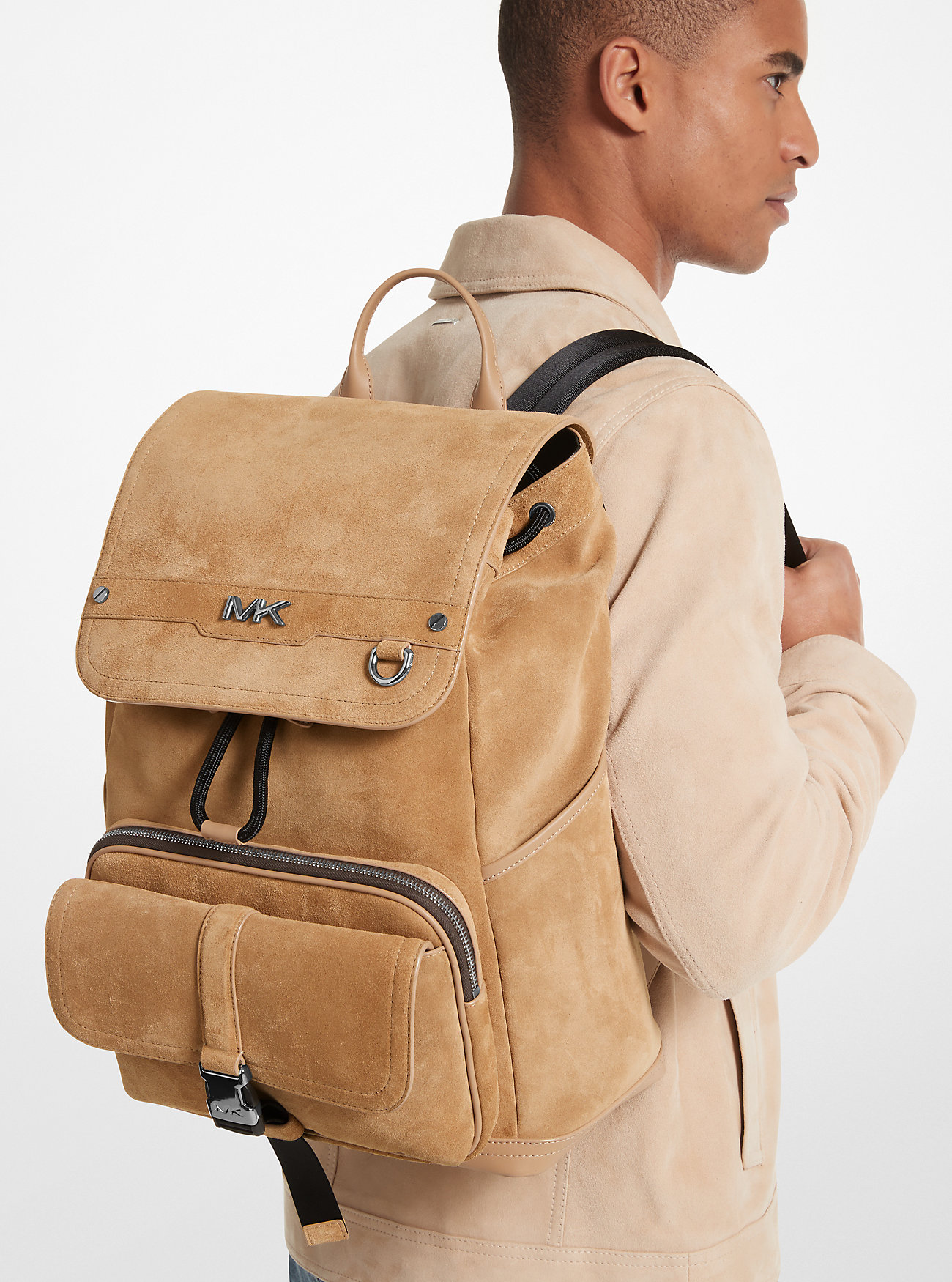 Designed to withstand daily use, our suede Varick backpack is detailed with an array of outside pockets and a trolley sleeve that makes traveling easy. A snap fastening reinforces the drawstring top to keeps all your essentials securely in place, and it has a padded back panel with adjustable straps for comfort. Inside, a dedicated slip pocket protects your tablet or laptop.