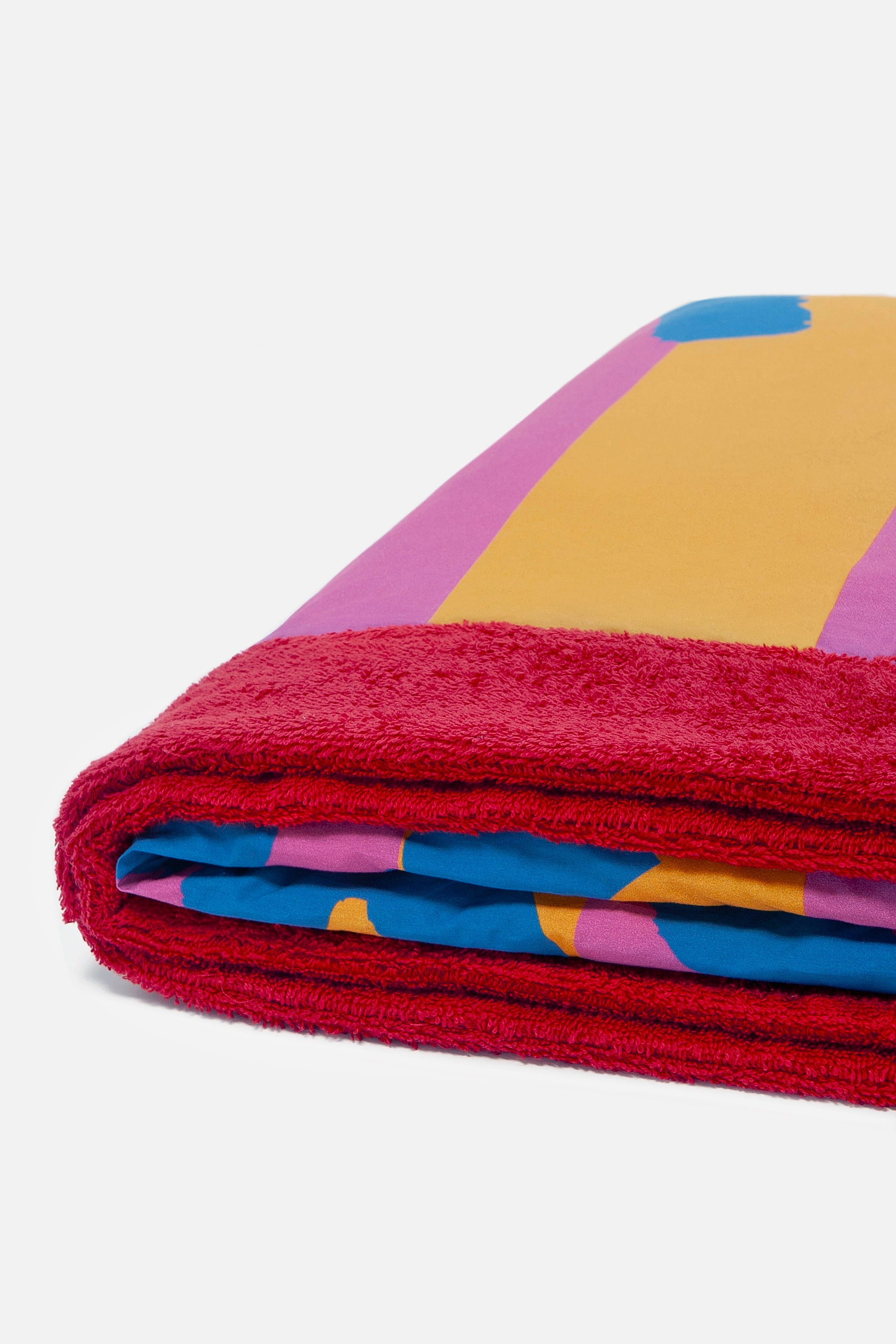 Bright, bold, and effortlessly chic, this vibrant beach towel reminds you that you are the sun—perfect for making waves on any shore.Our Signature beach towels, crafted from premium Egyptian cotton and cotton poplin, are double-sided for ultimate softness and absorbency. Featuring an effortlessly cool and eye-catching design, they’re perfect for lounging in style—just don’t forget your sunscreen to keep the glow, not the burn!