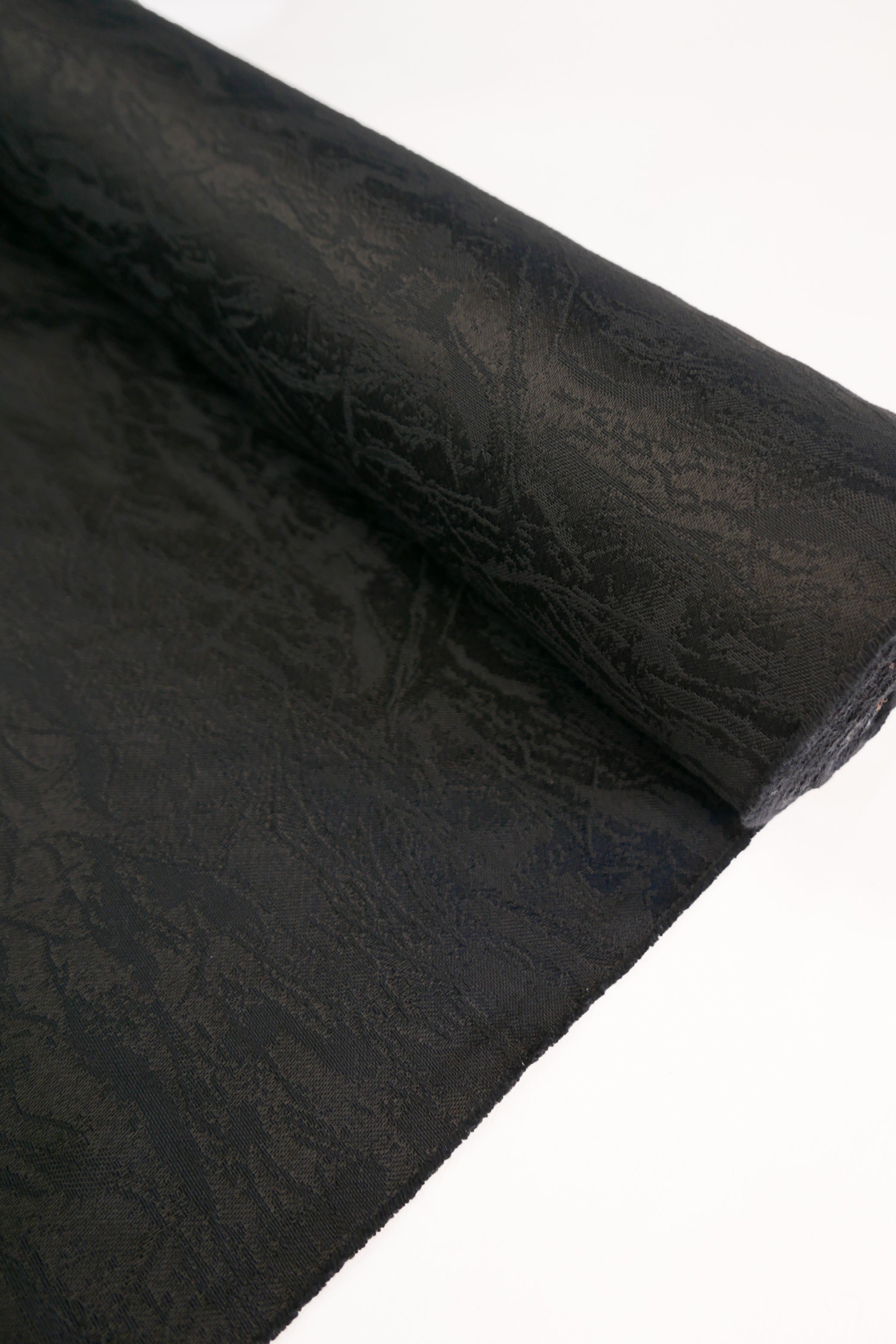 This durable, commercial-grade upholstery fabric features a raised abstract design in black. Midweight and holding good structure, this fabric is ideal for indoor upholstery projects, as well as bags, garments and accessories.