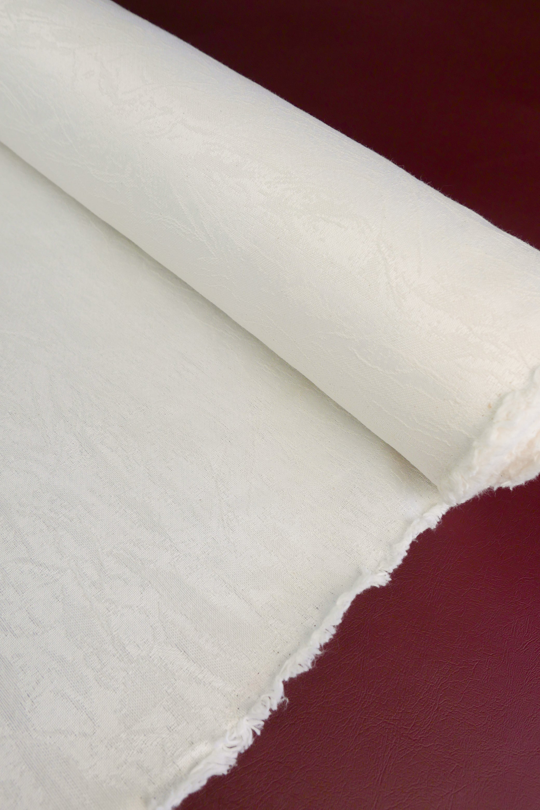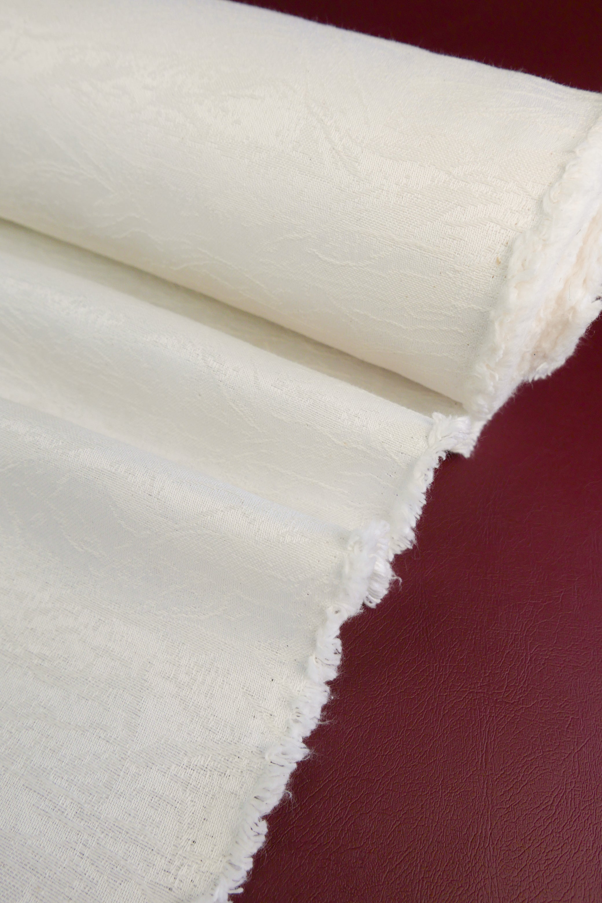 This durable, commercial-grade upholstery fabric features a raised floral design in off-white. Midweight and holding good structure, this fabric is ideal for indoor upholstery projects, as well as bags, garments and accessories.