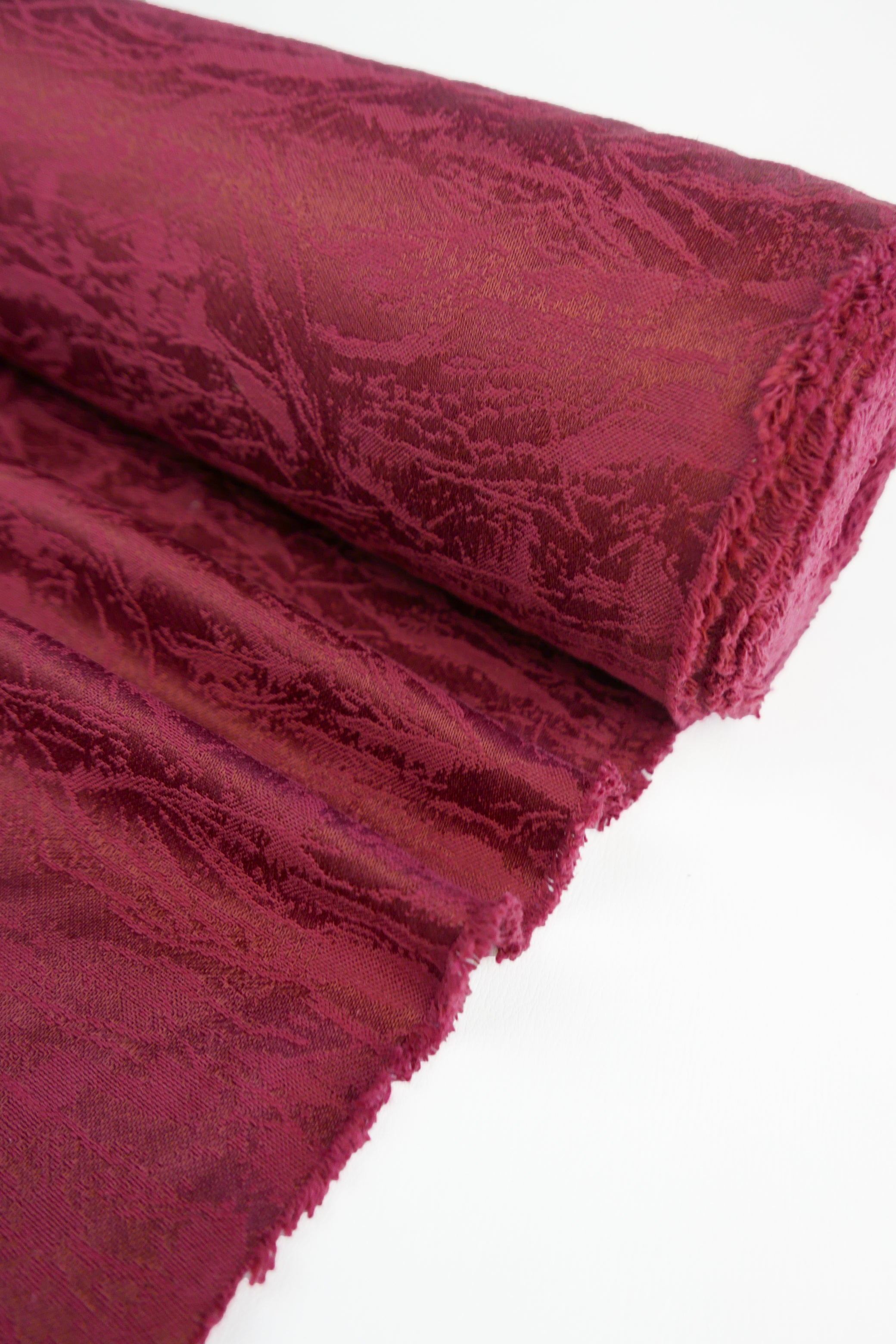 This durable, commercial-grade upholstery fabric features a raised abstract design in a tempranillo colourway. Midweight and holding good structure, this fabric is ideal for indoor upholstery projects, as well as bags, garments and accessories.
