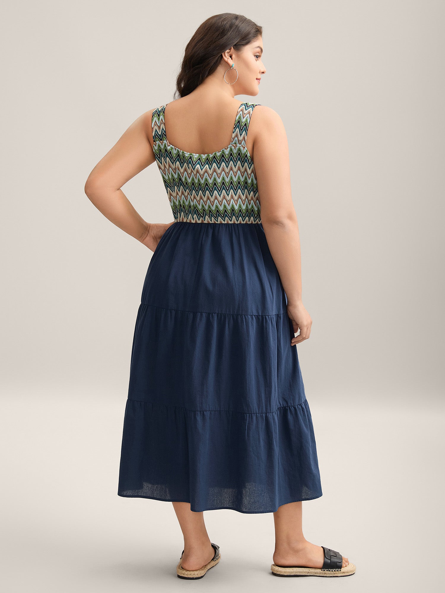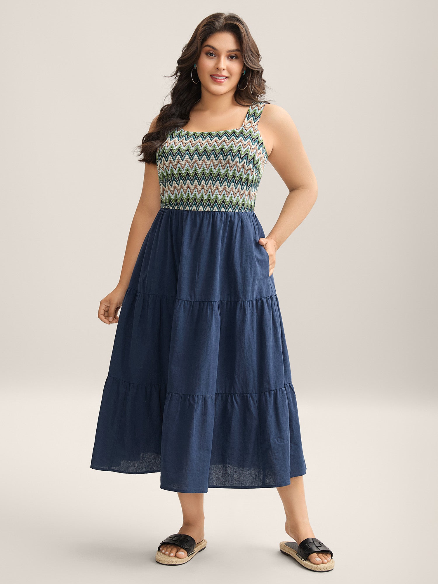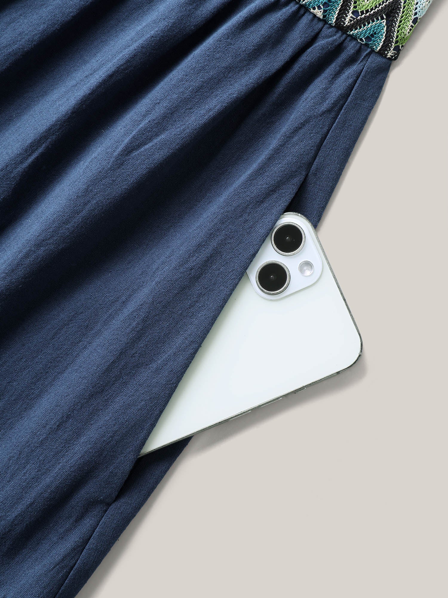 • Cotton Crochet Stretchy Waist Pockets Midi Dress