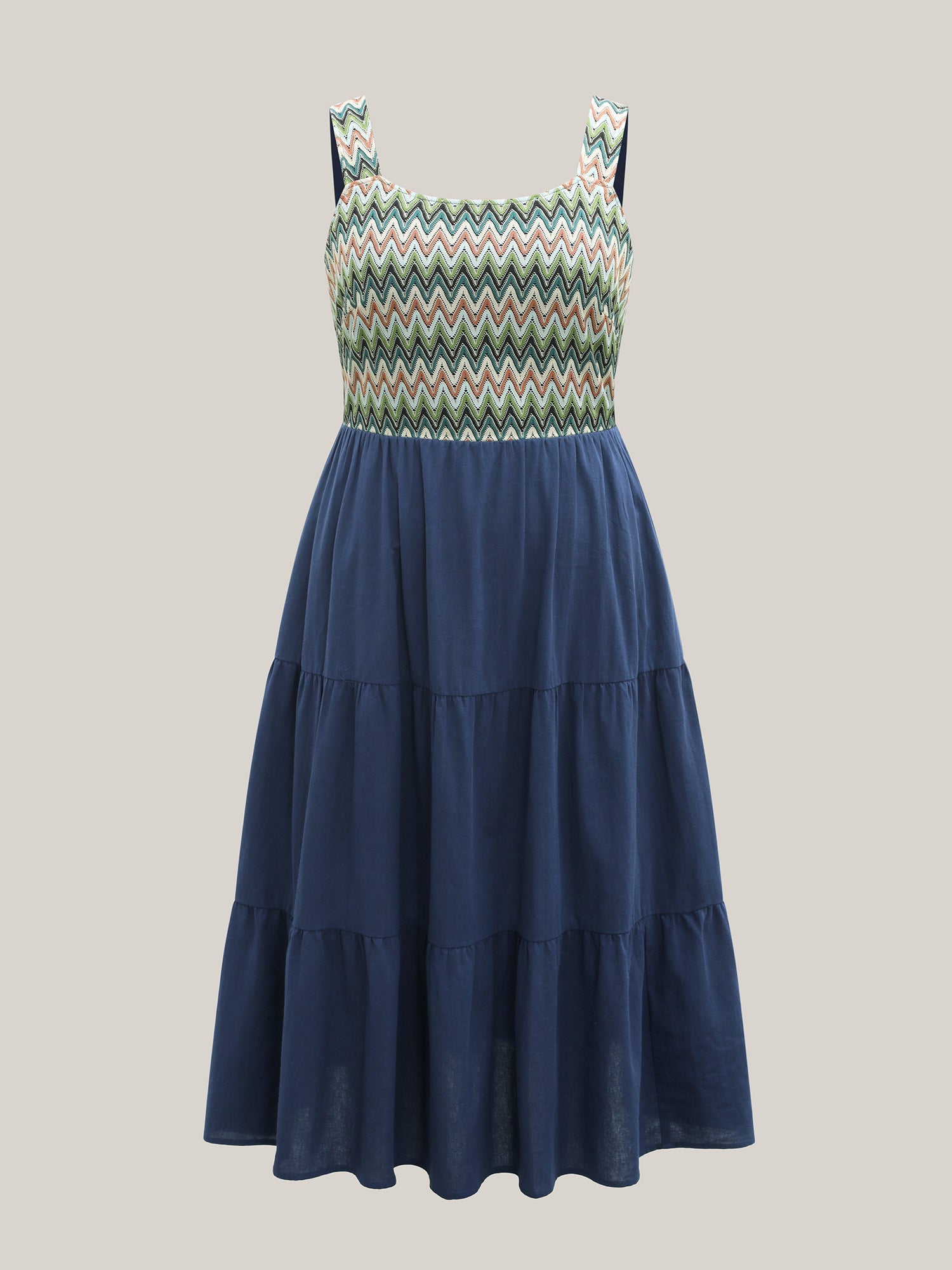Cotton Crochet Stretchy Waist Pockets Midi Dress