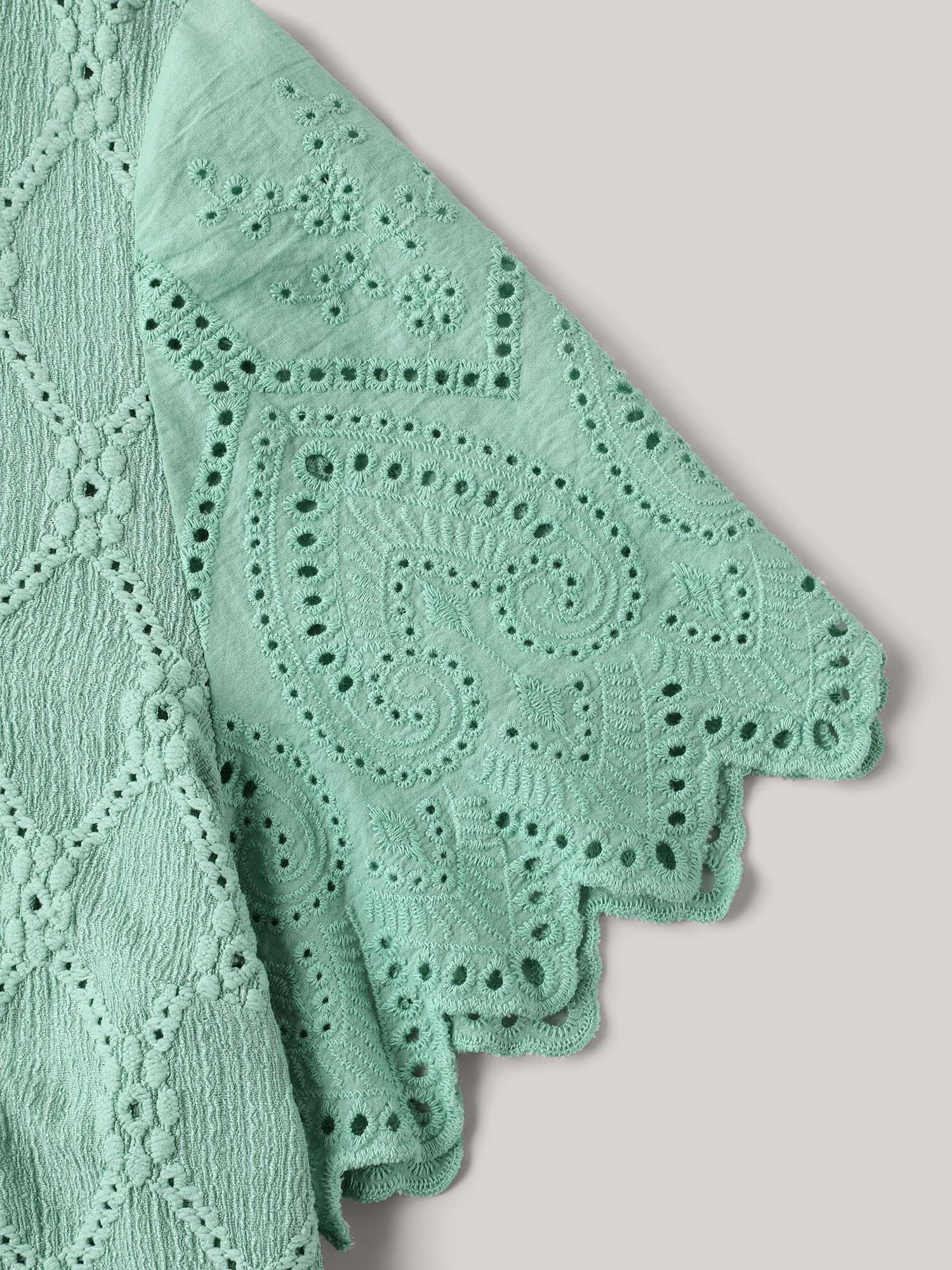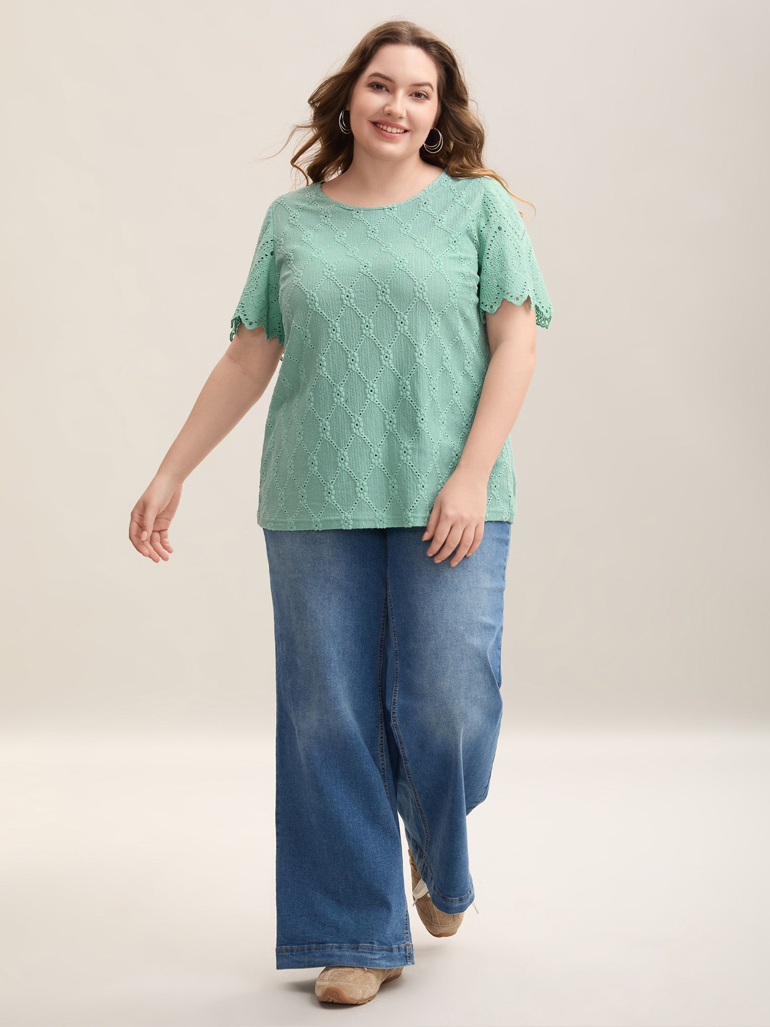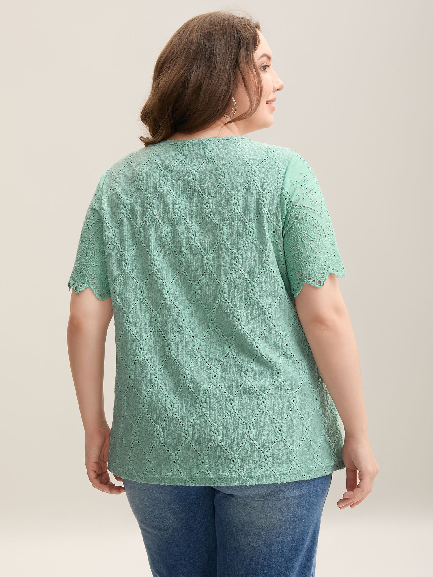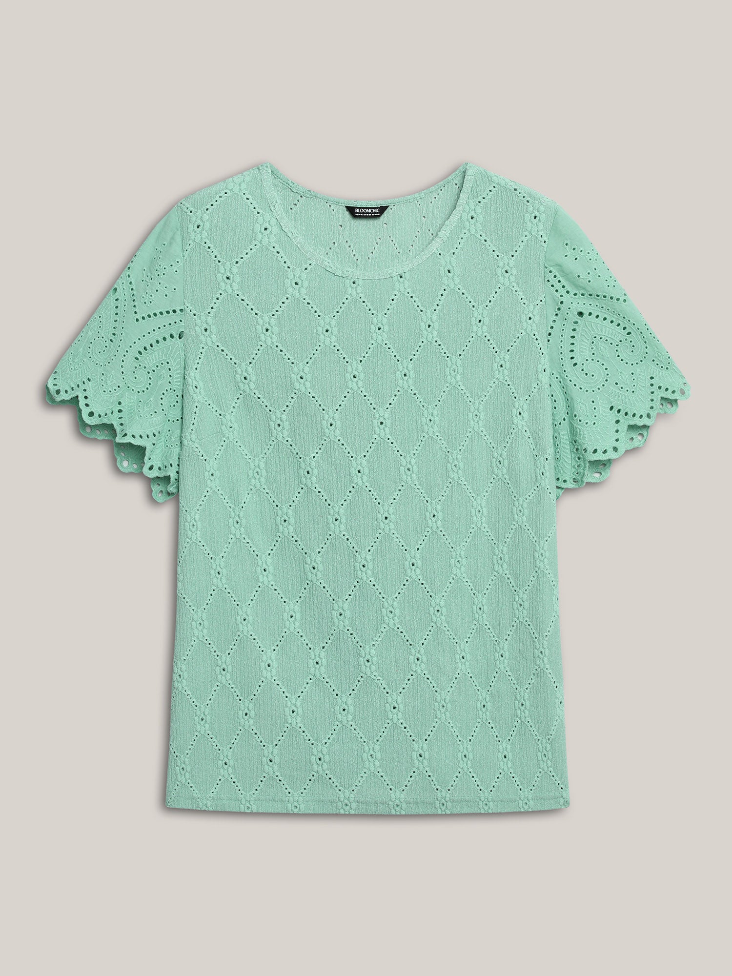 Cut-Out Textured Spliced Sleeve T-Shirt