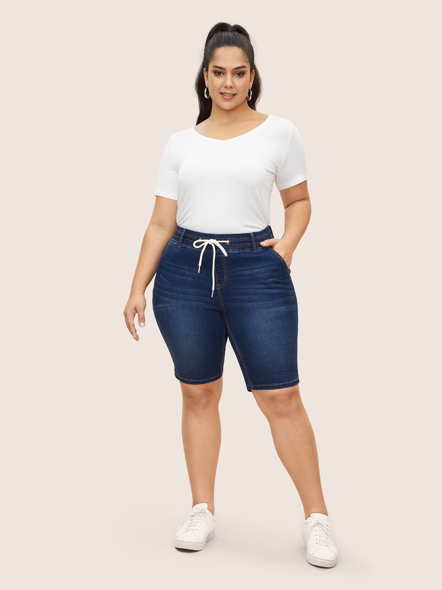 Dark Wash Drawstring Slit Hem Denim Shorts