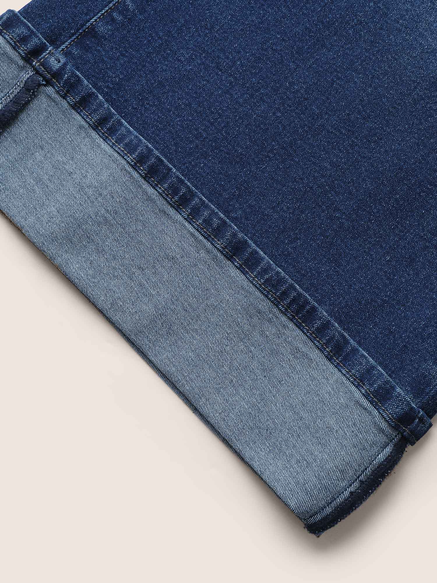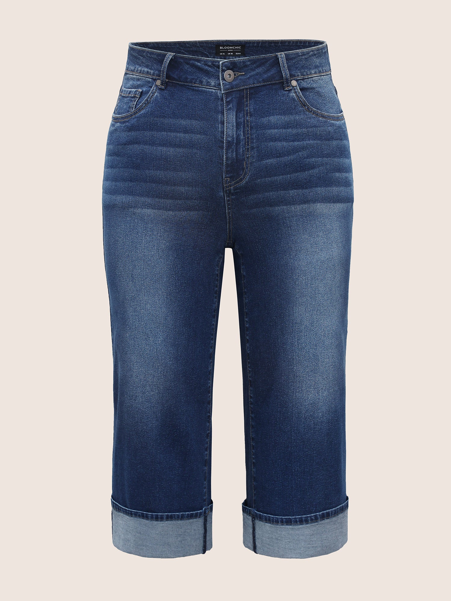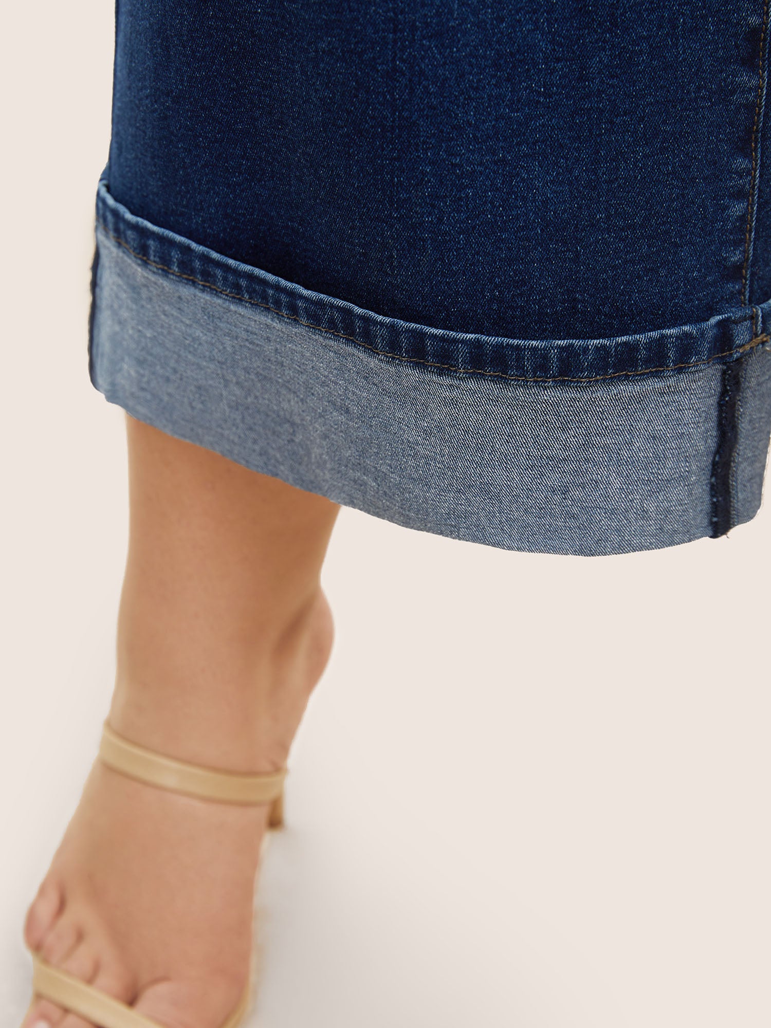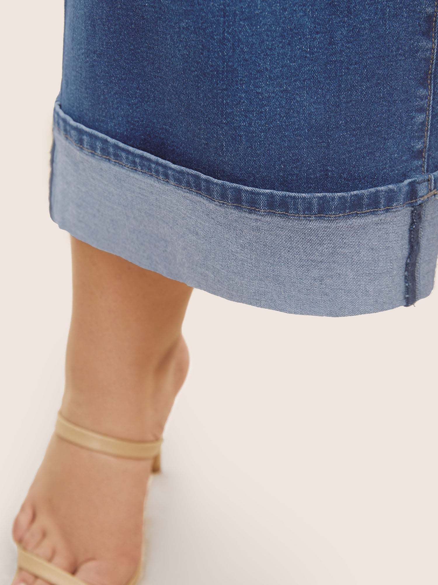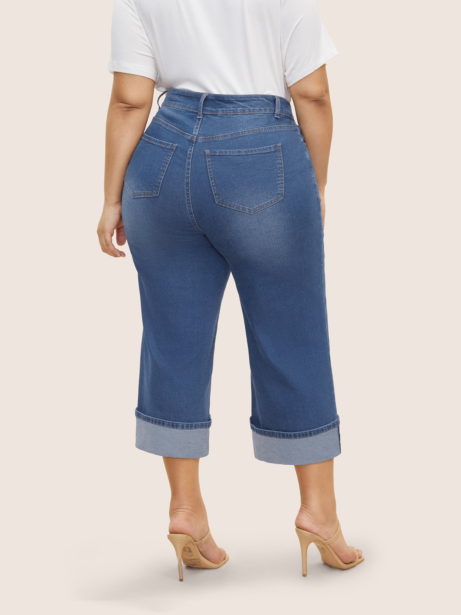 Dark Wash Roll Hem Cropped Wide Leg Jeans