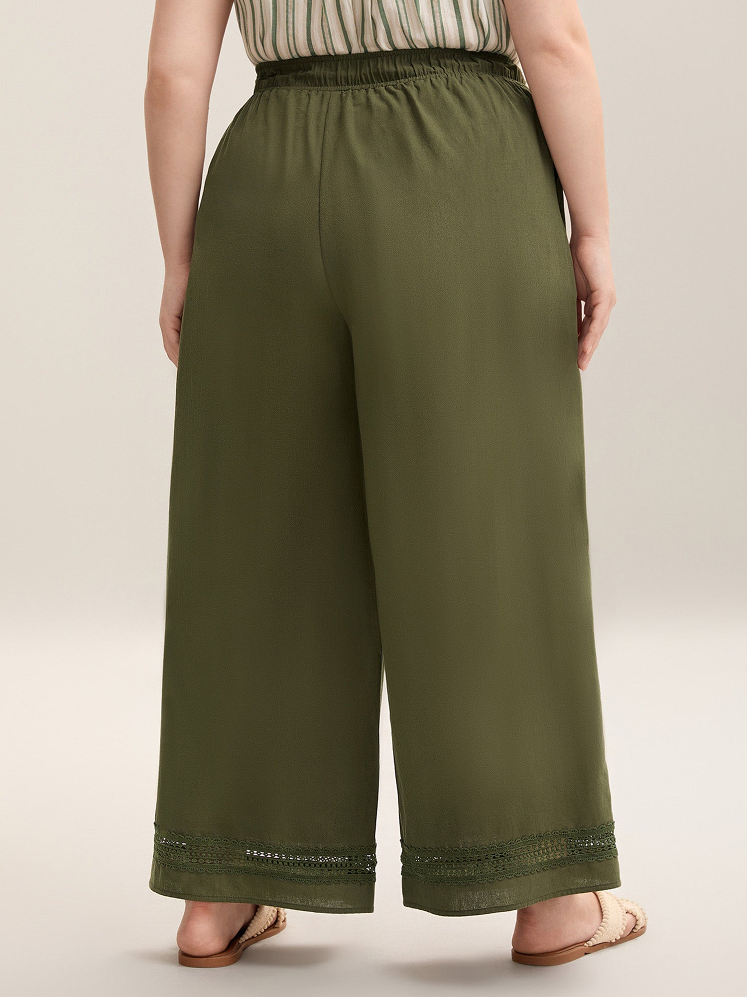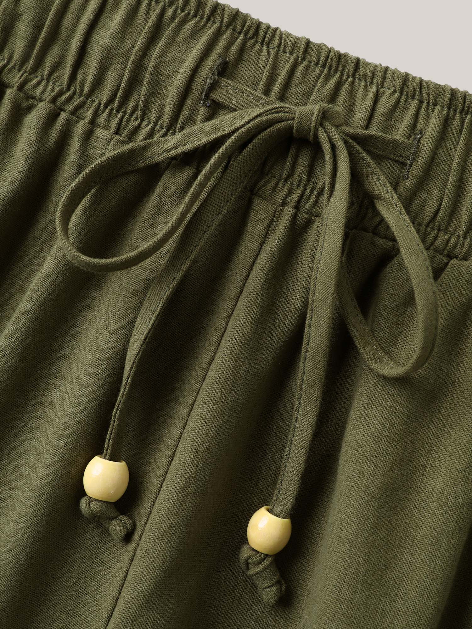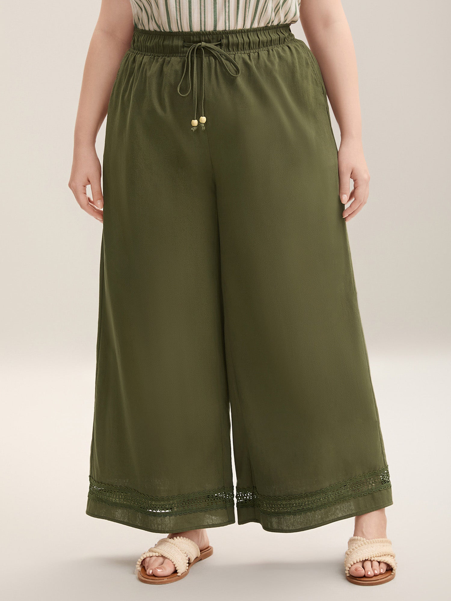 Drawstring Lace Detail Wide-Leg Pants