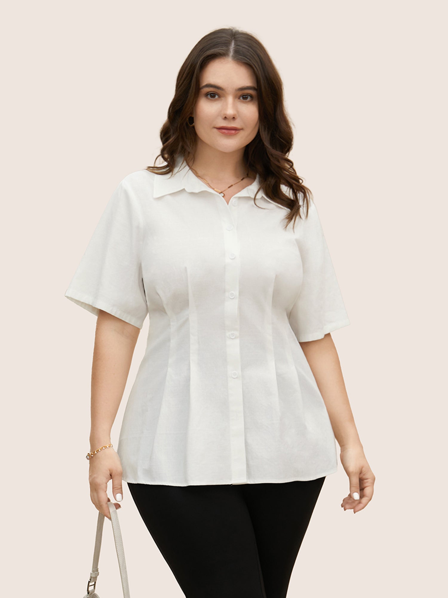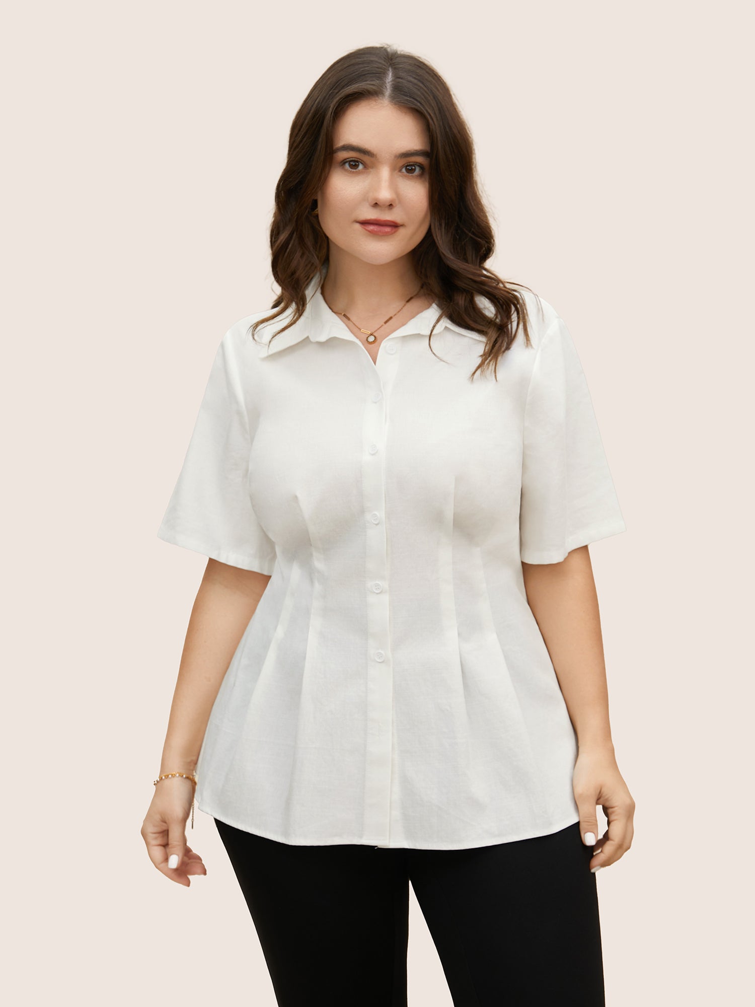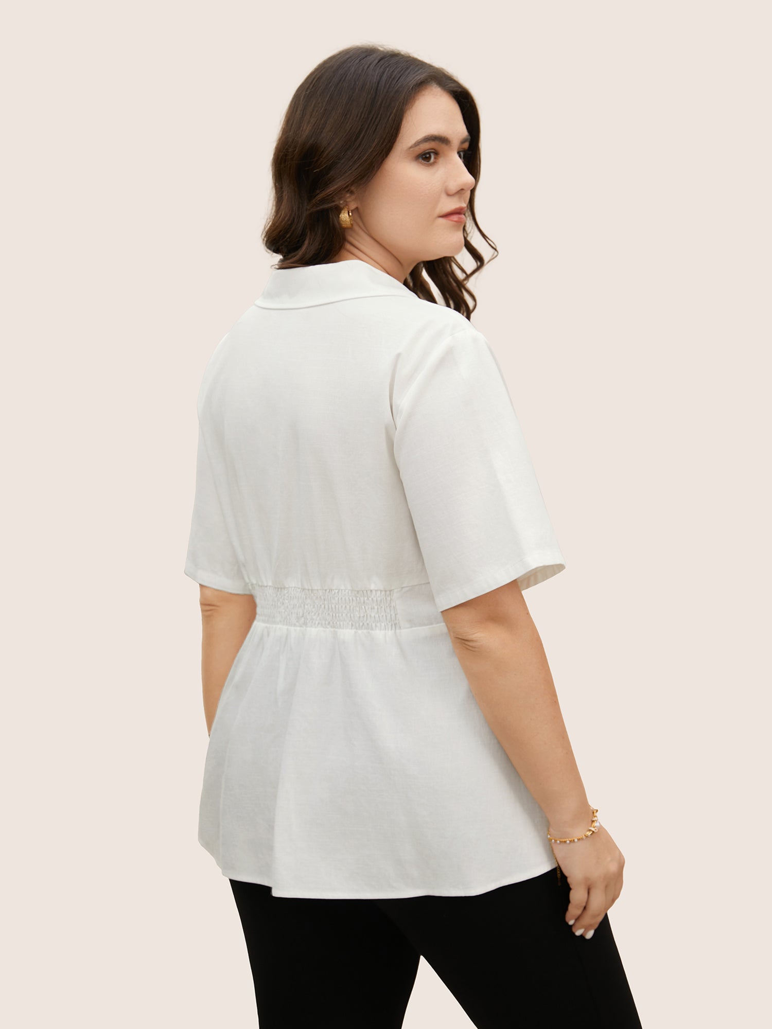 Plain Shirt Collar Waist Design Blouse