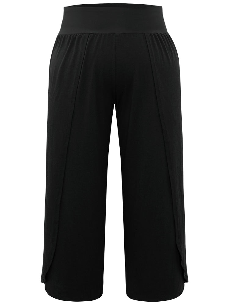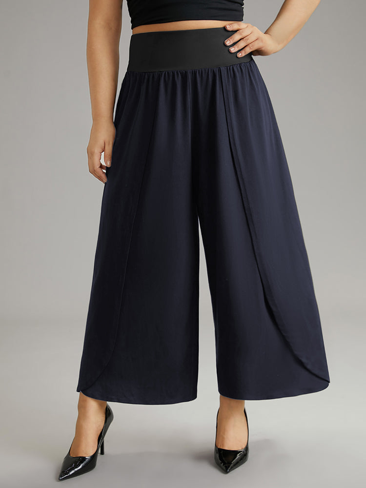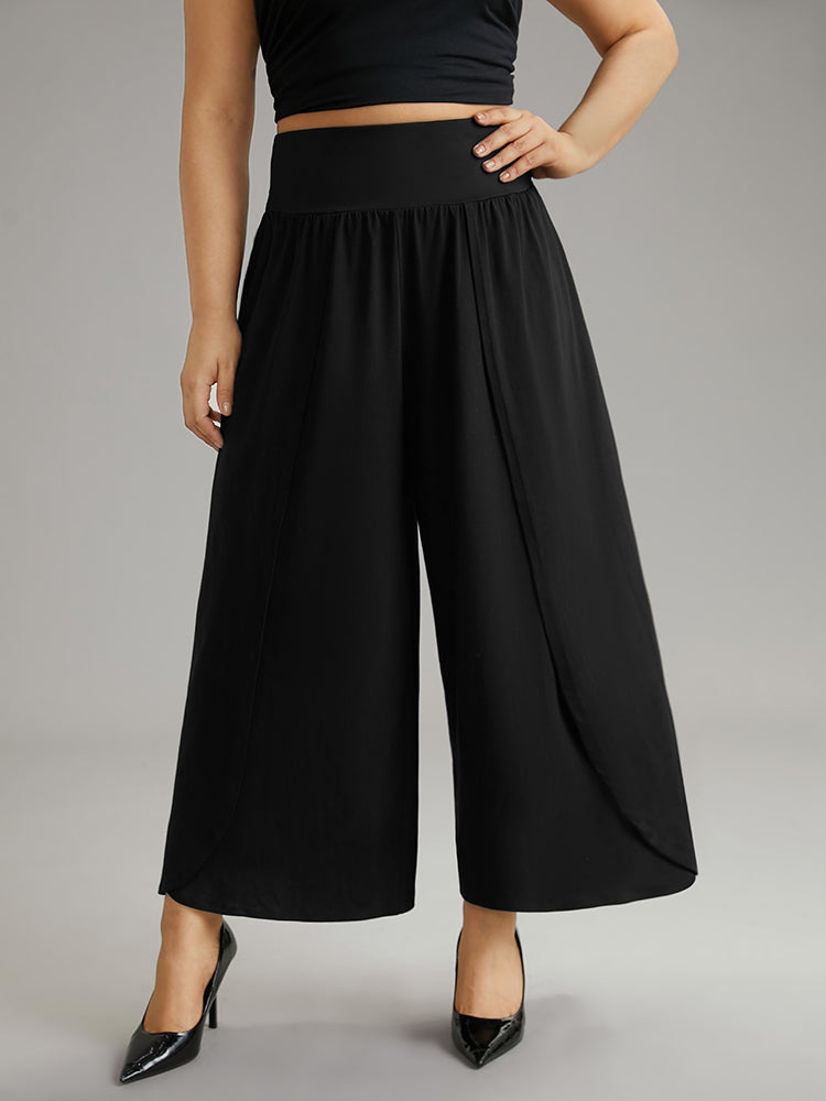 Plain Wrap Hem Wideband Waist Wide Leg Pants