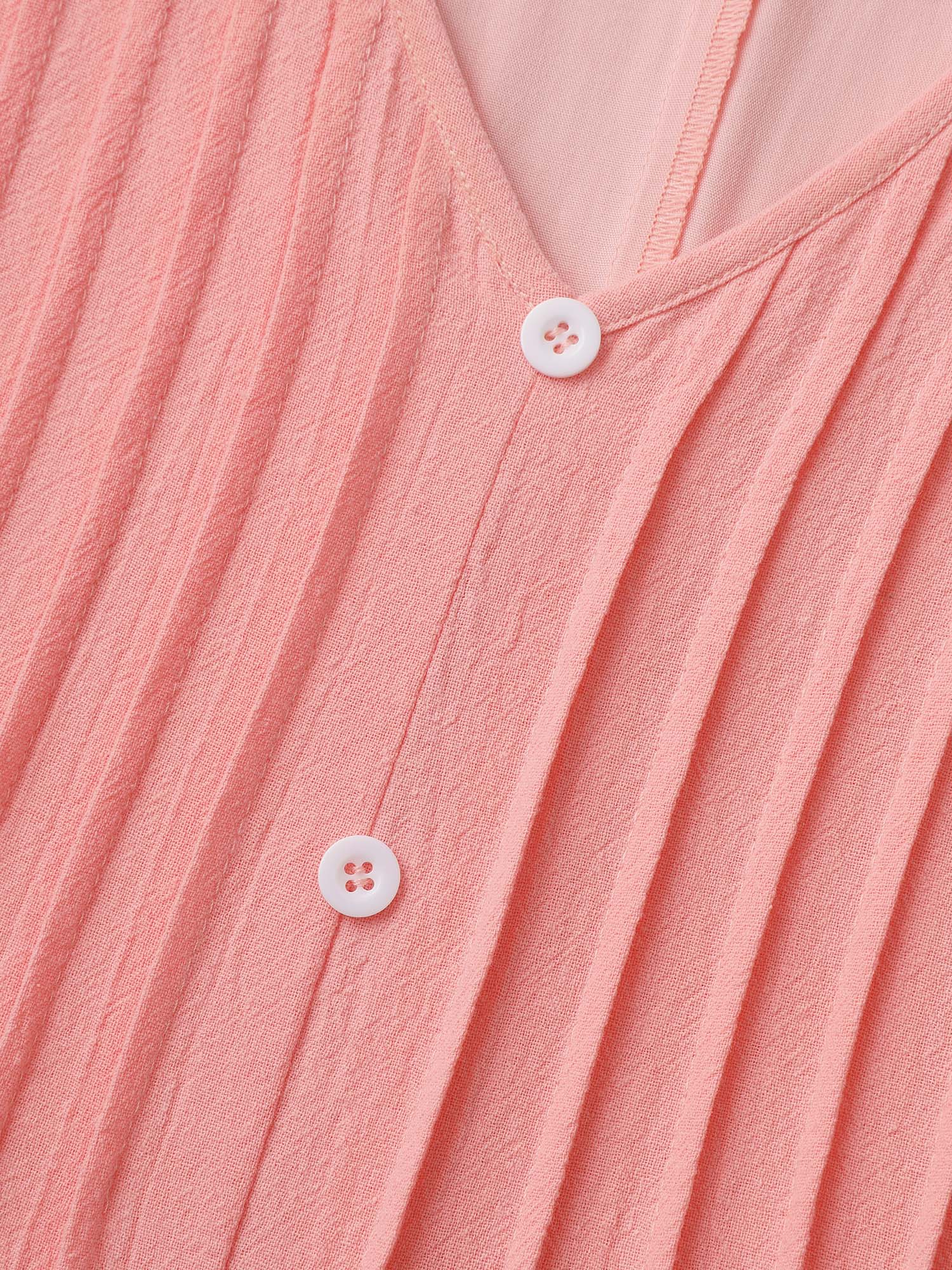 • Pure Cotton Toothpick Pleat Pockets Shirt Dress