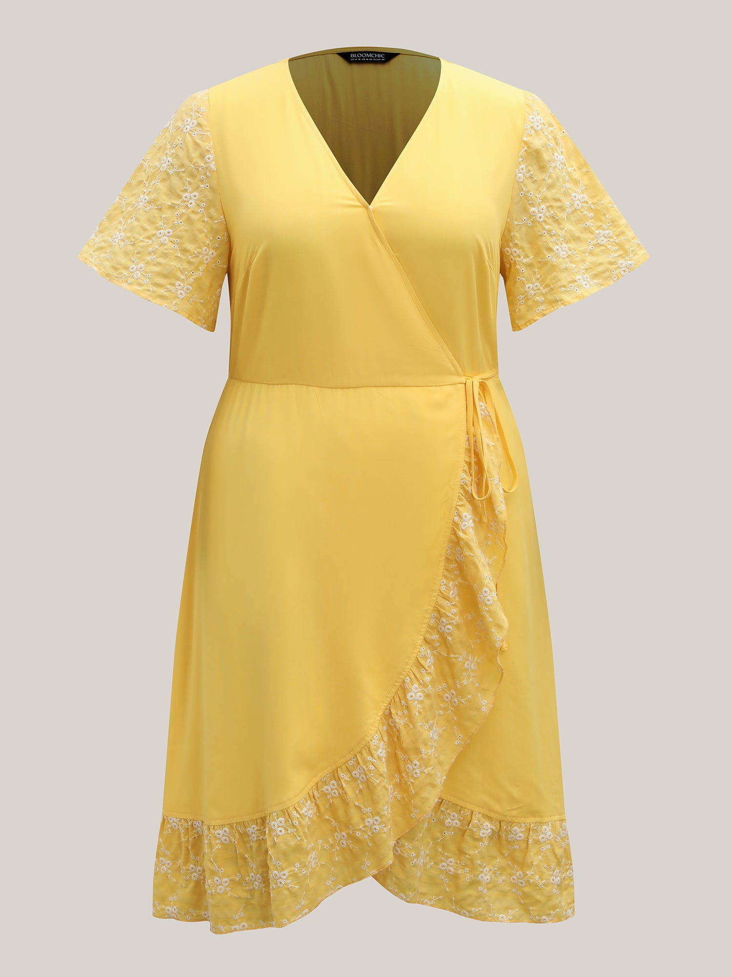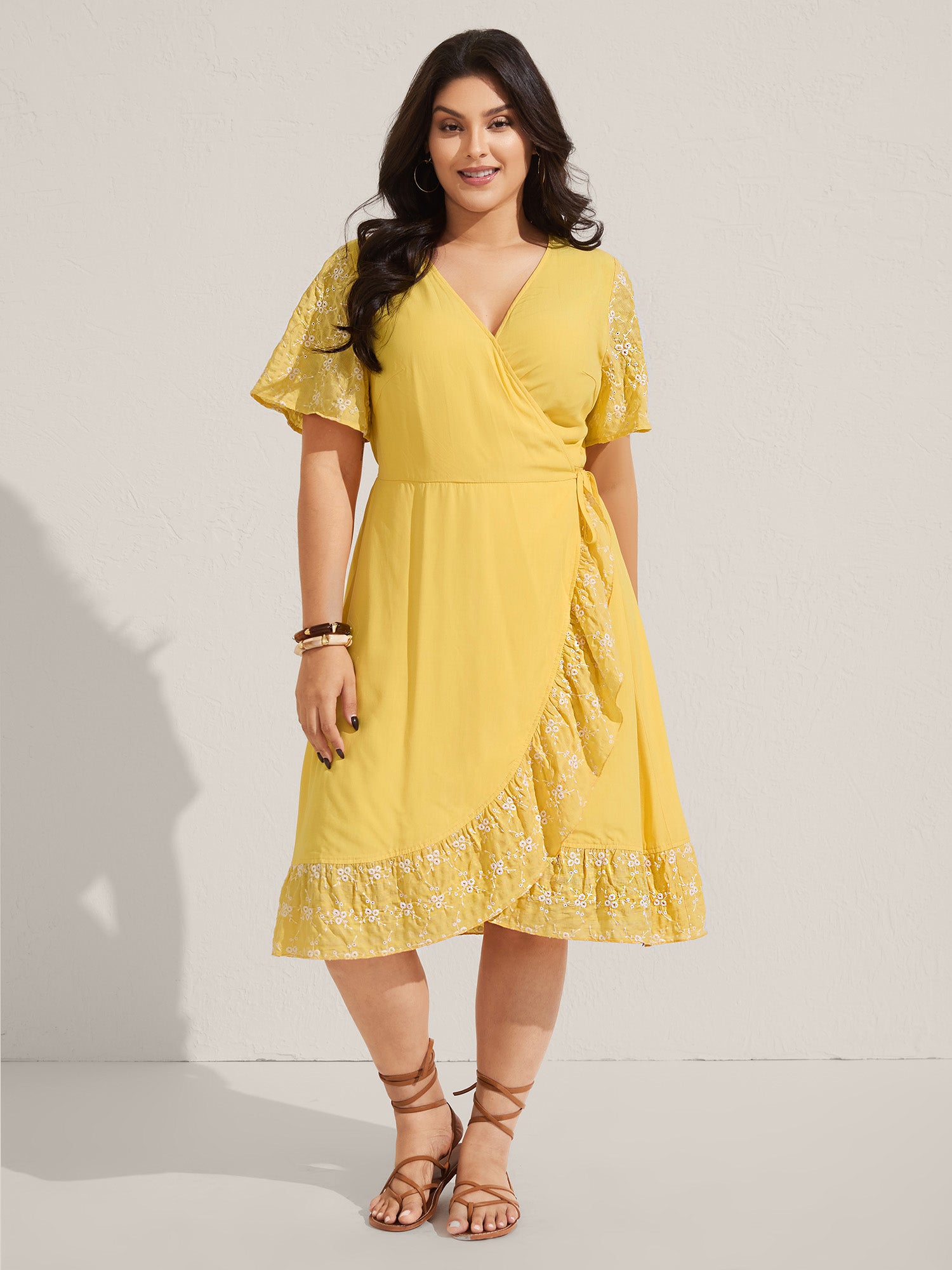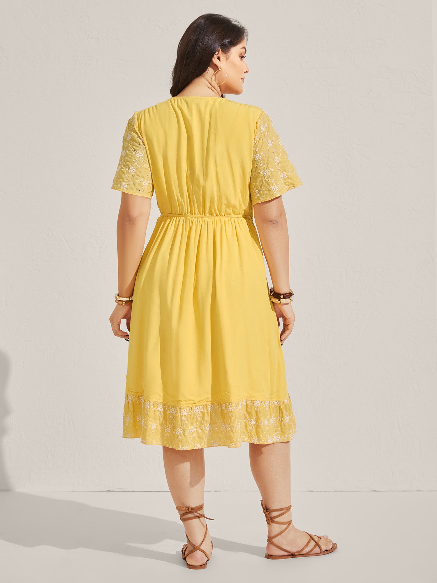 • Rayon Textured Color Contrast Overlap Midi Dress