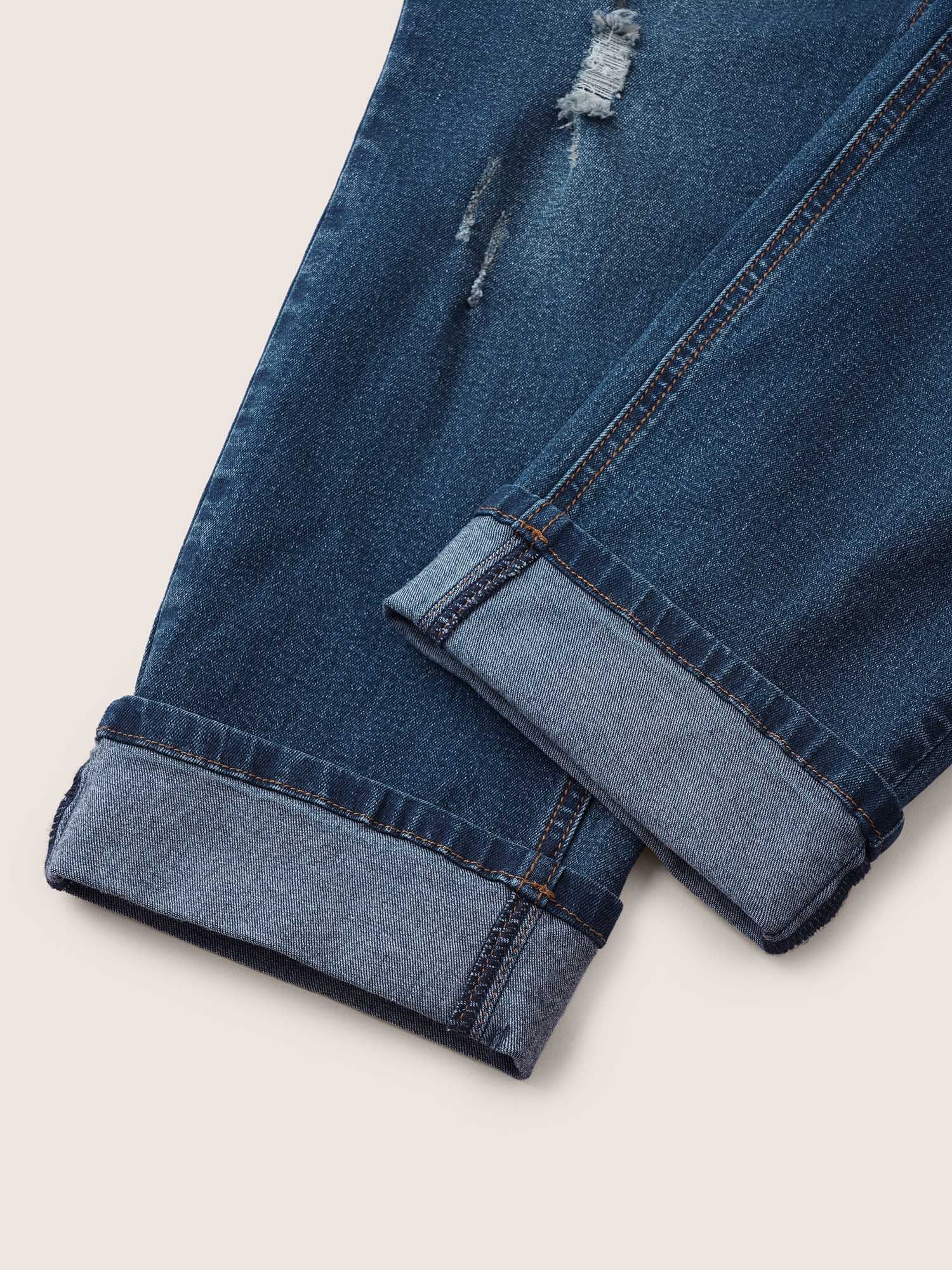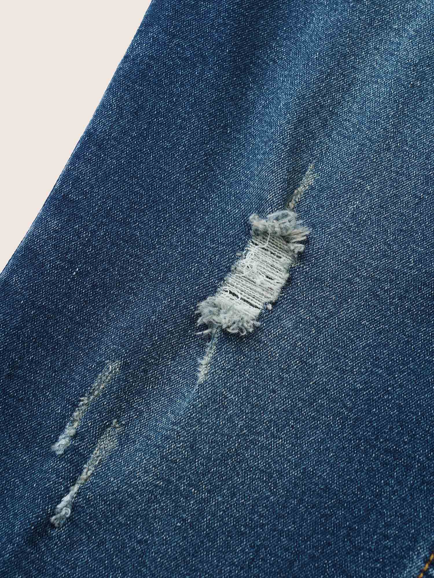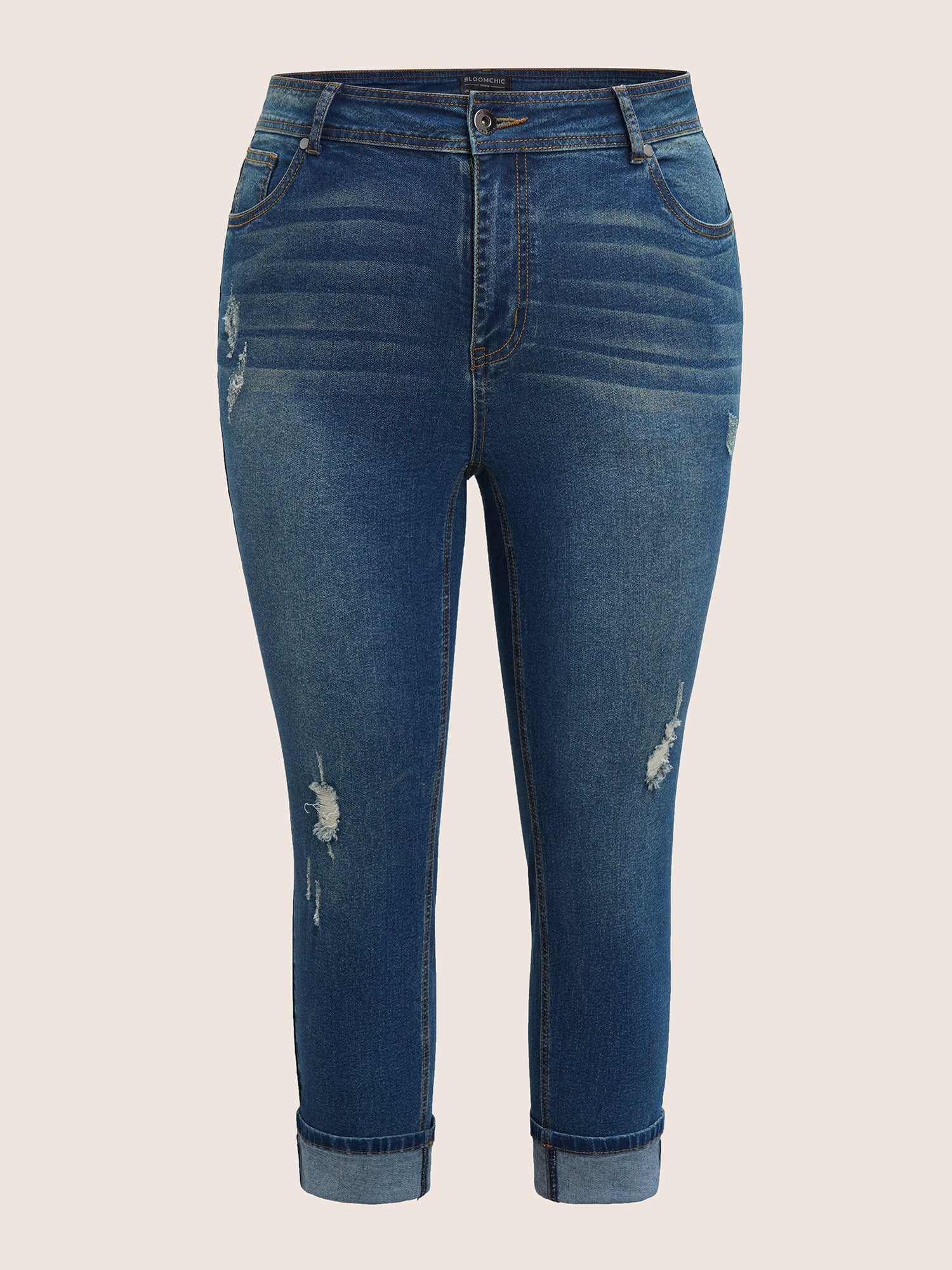 • Roll Hem Ripped Pocket Straight Leg Cropped Jeans