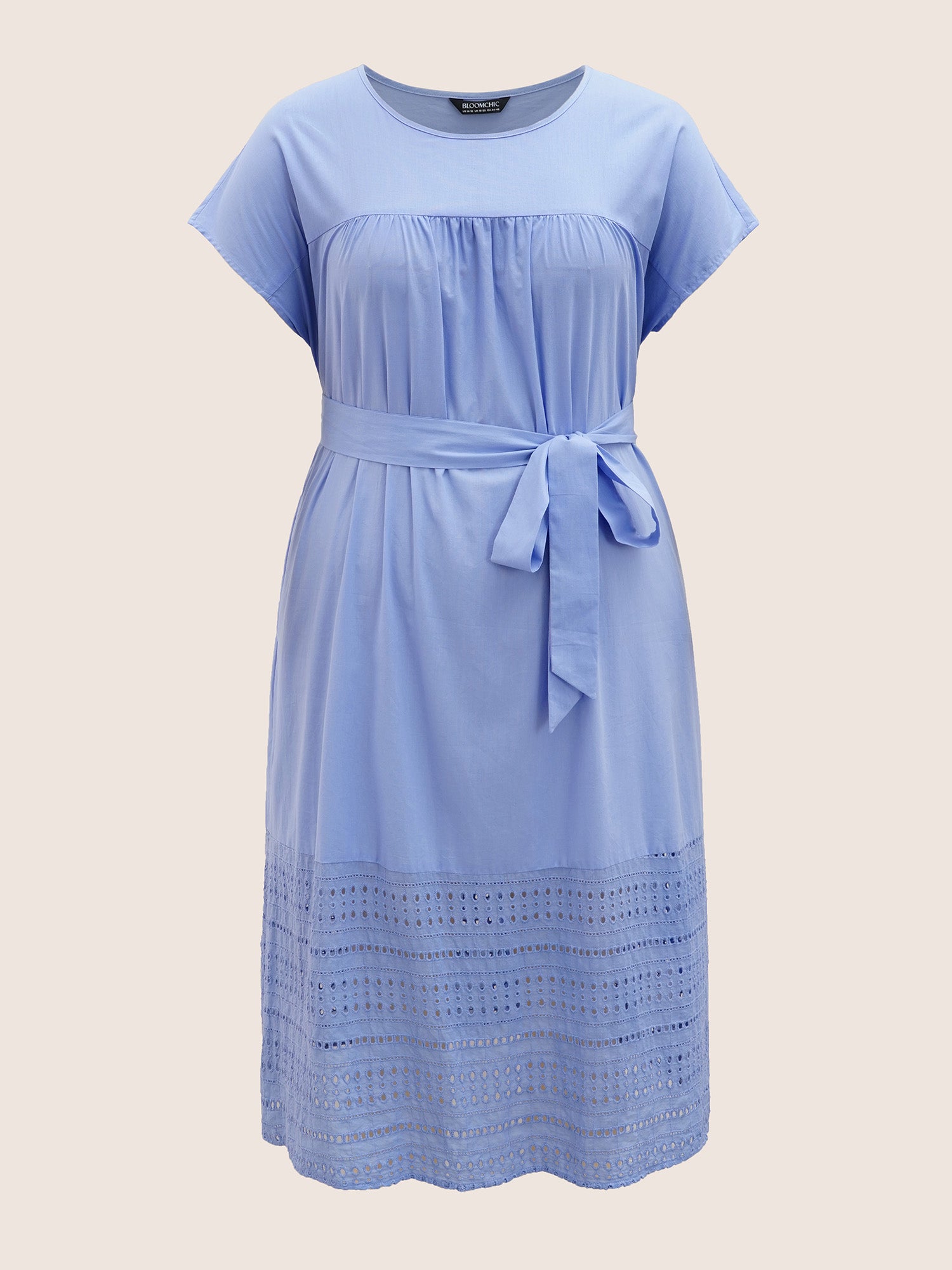 • Solid Dolman Sleeve Broderie Anglaise Belted Dress