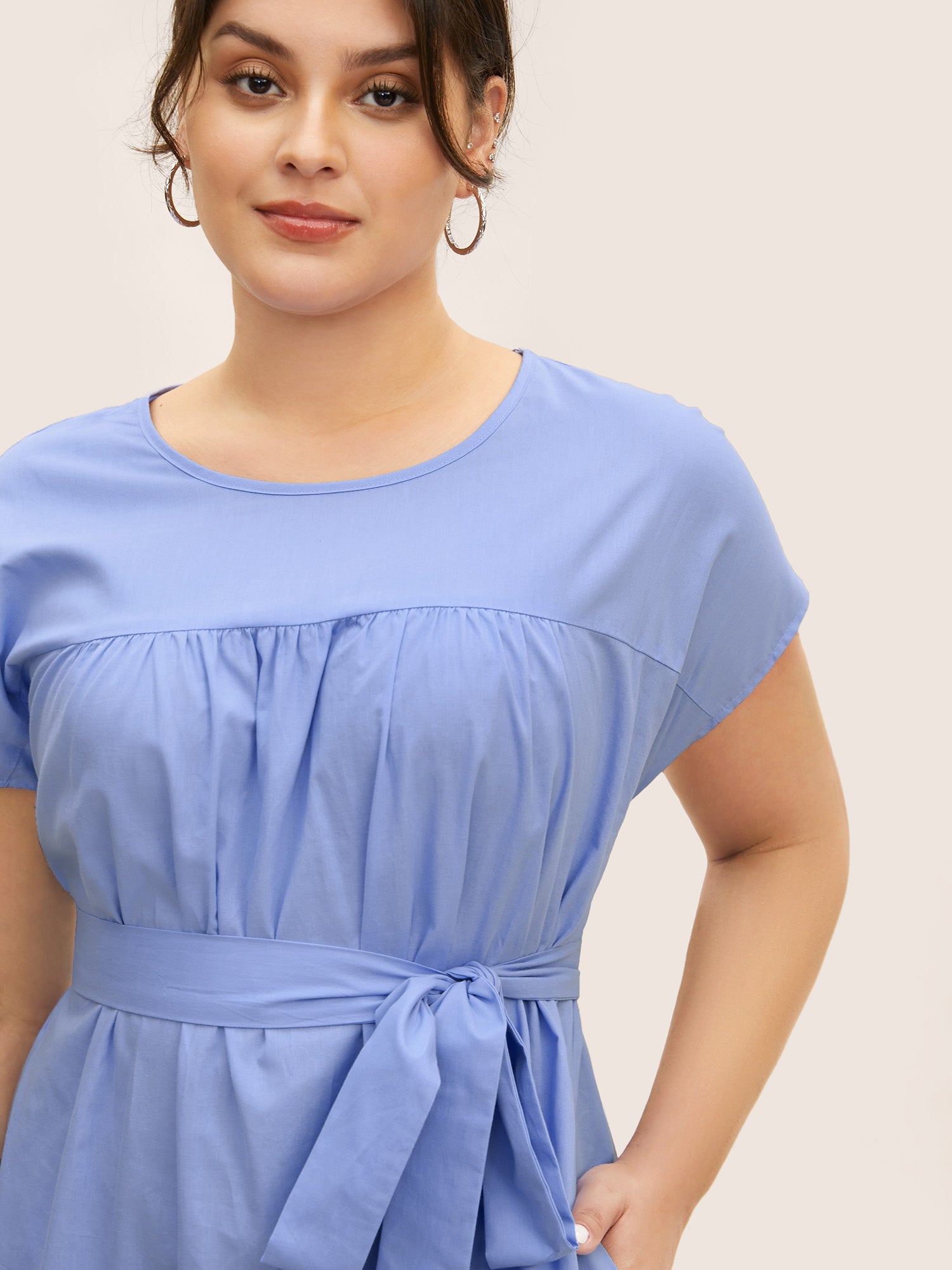 Solid Dolman Sleeve Broderie Anglaise Belted Dress