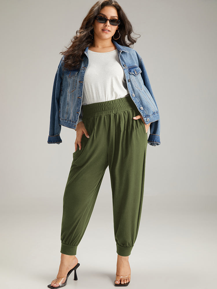 Solid Shirred Pocket Harem Sweatpants