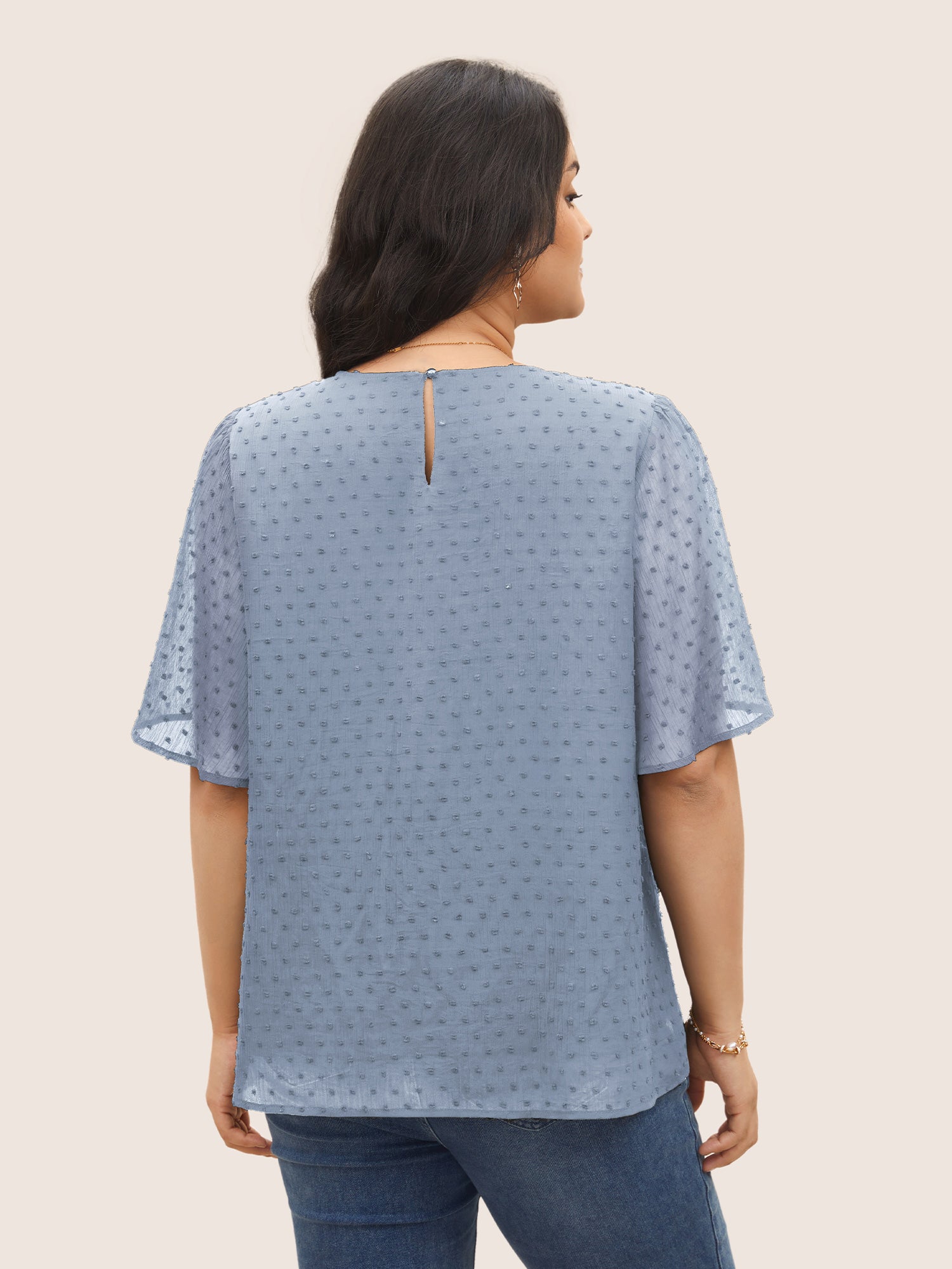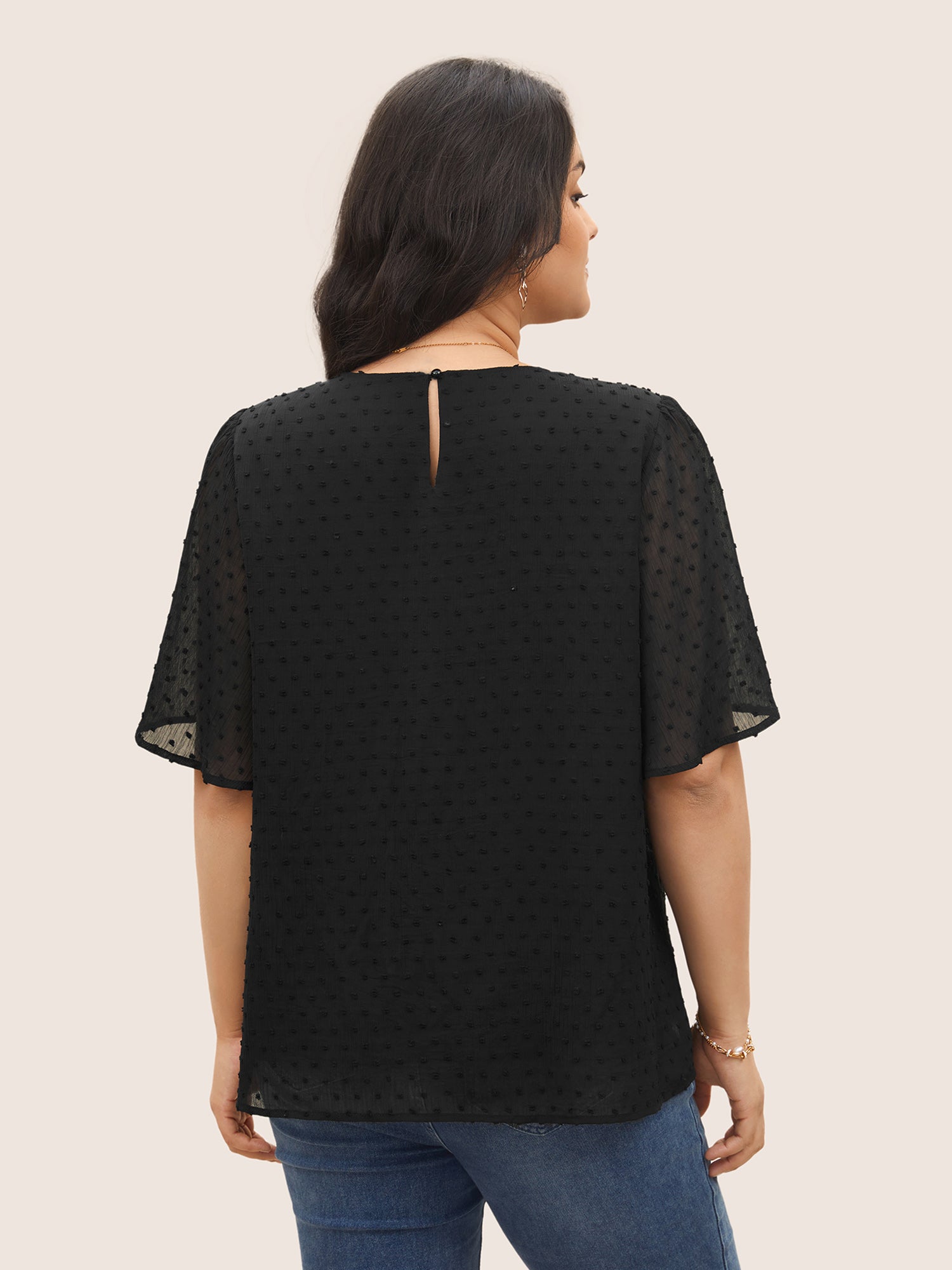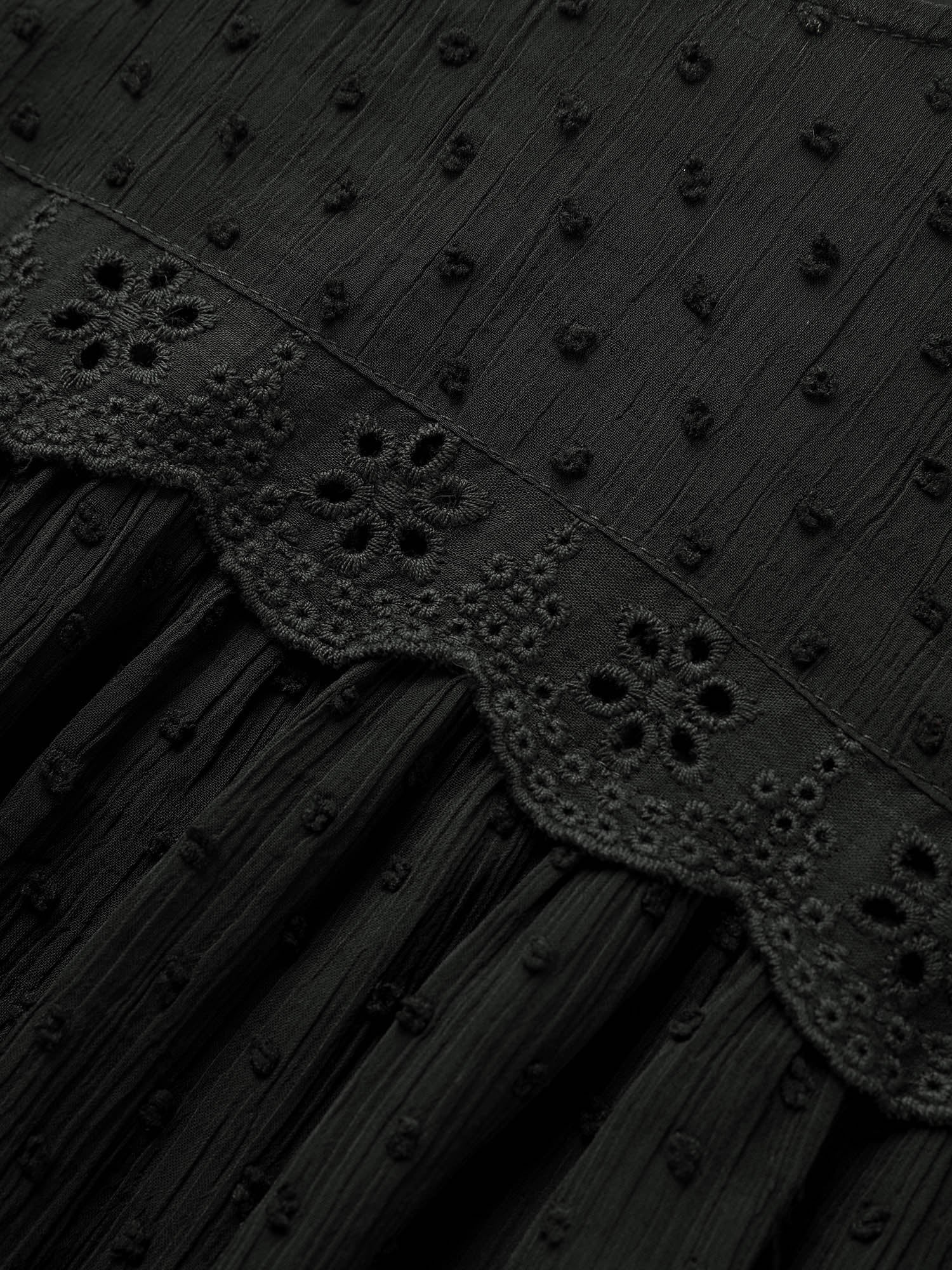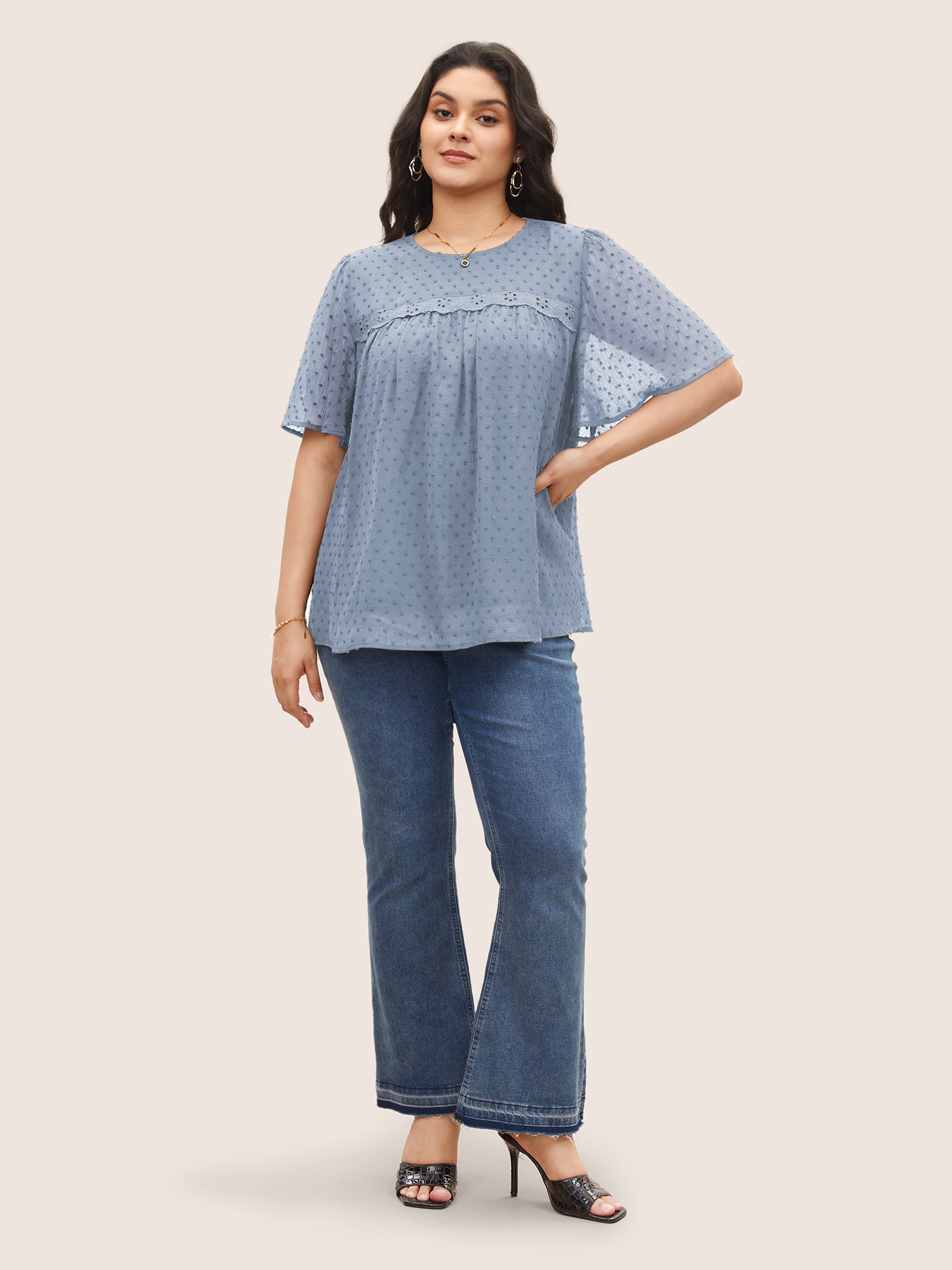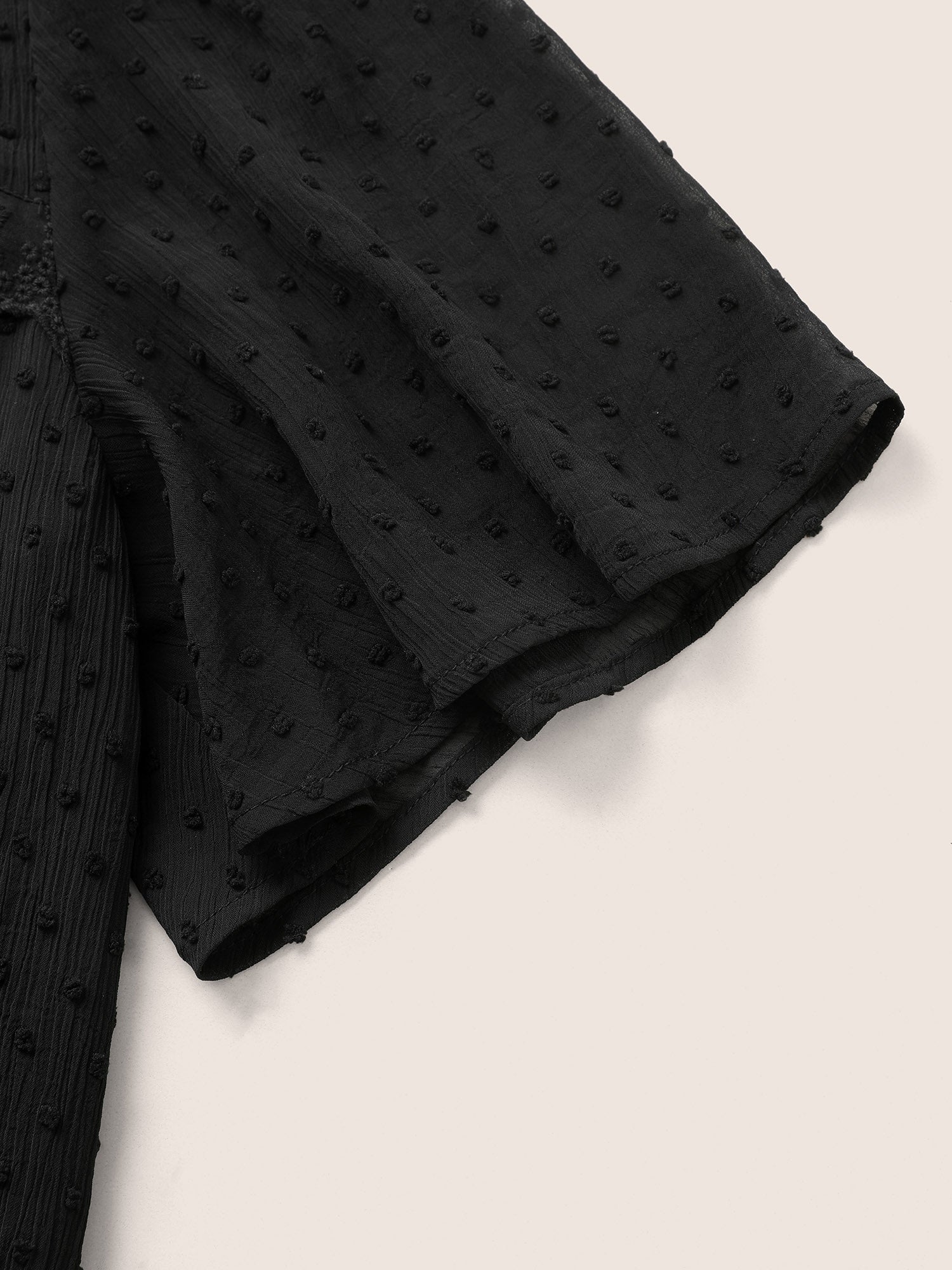 • Solid Texture Lace Trim See Through Gathered Blouse