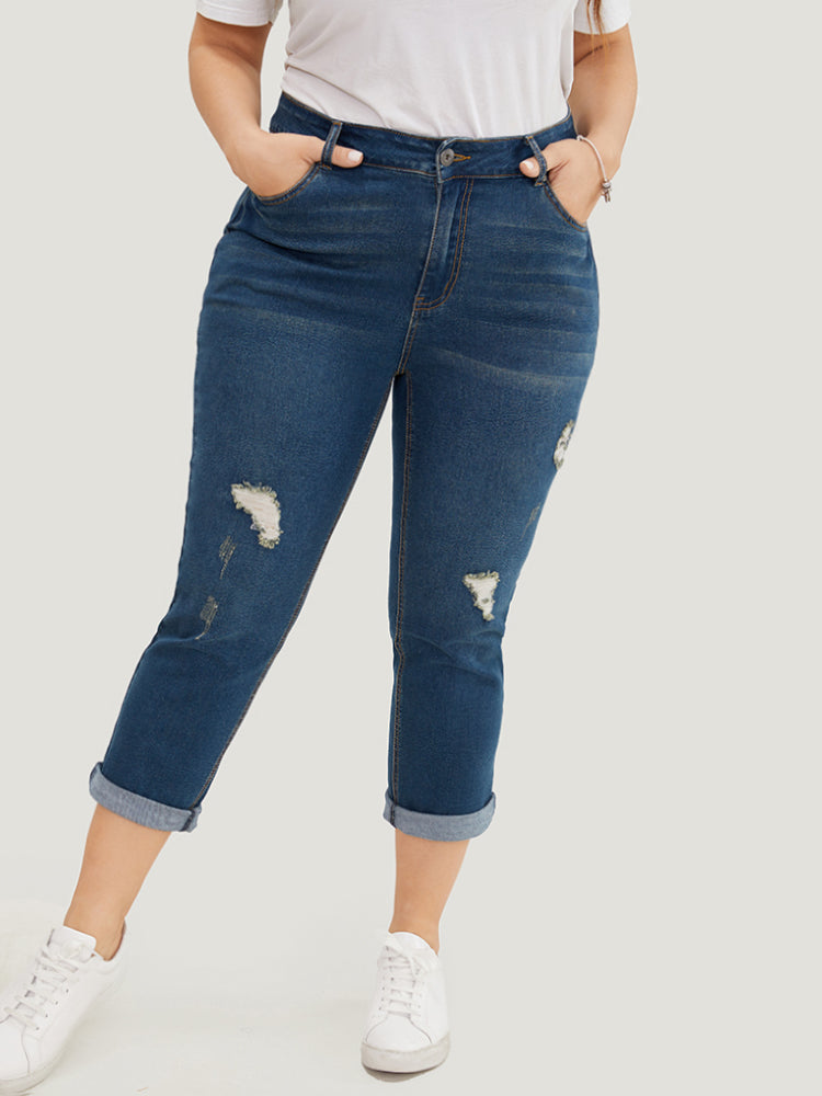 • Very Stretchy Dark Wash Roll Hem Cropped Jeans